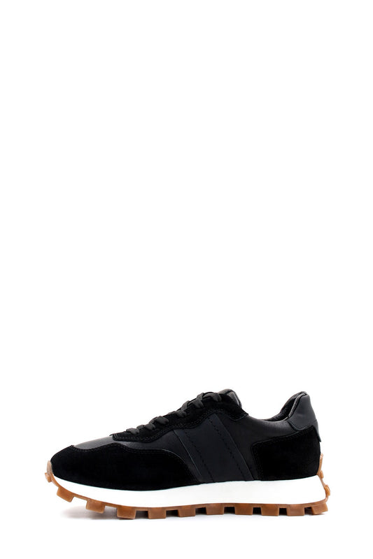 Men's Black Leather and Suede Sneakers with Contrast Sole