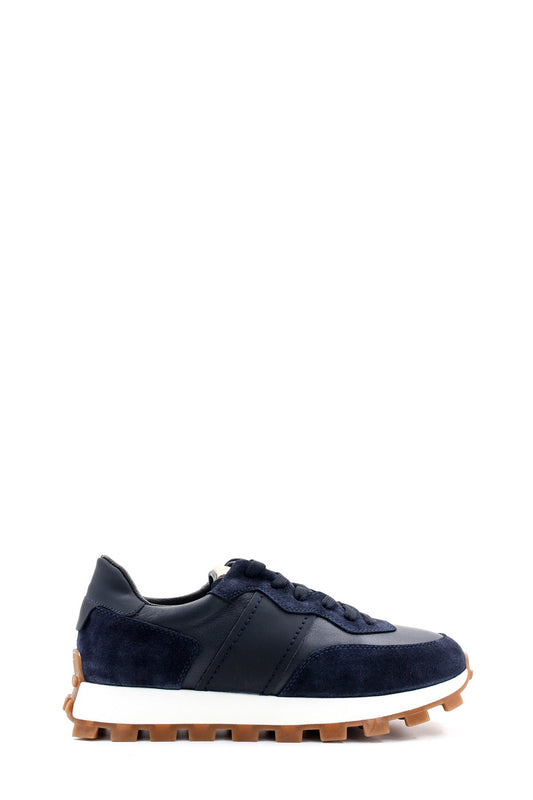 Men's Navy Leather and Suede Sneakers with Gum Sole