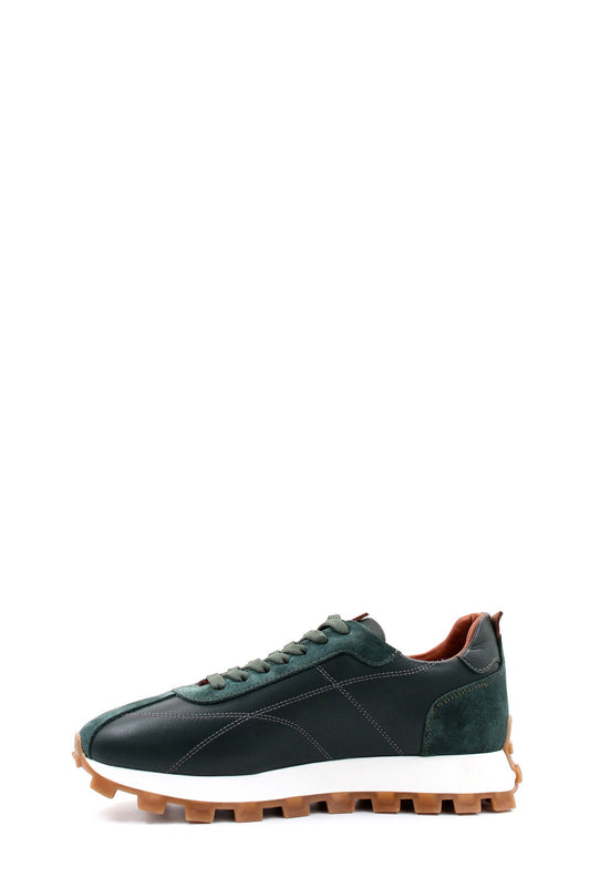 Men's Green and Brown Casual Sneakers with Suede and Leather Upper