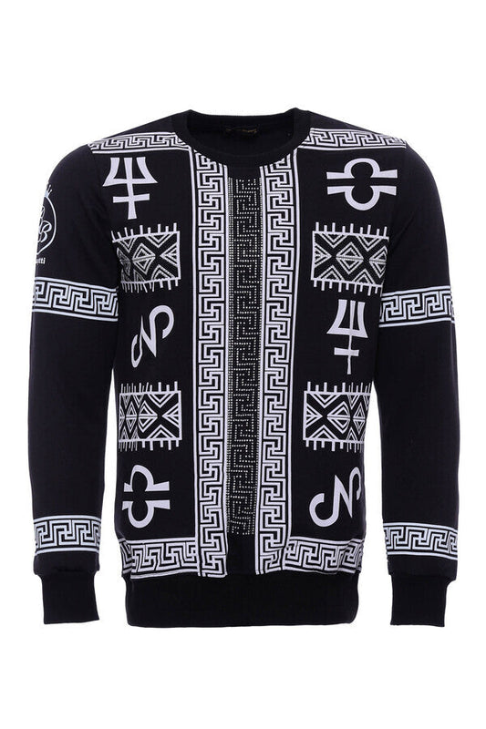 Black Printed Circle Neck Long Sleeves Sweatshirt