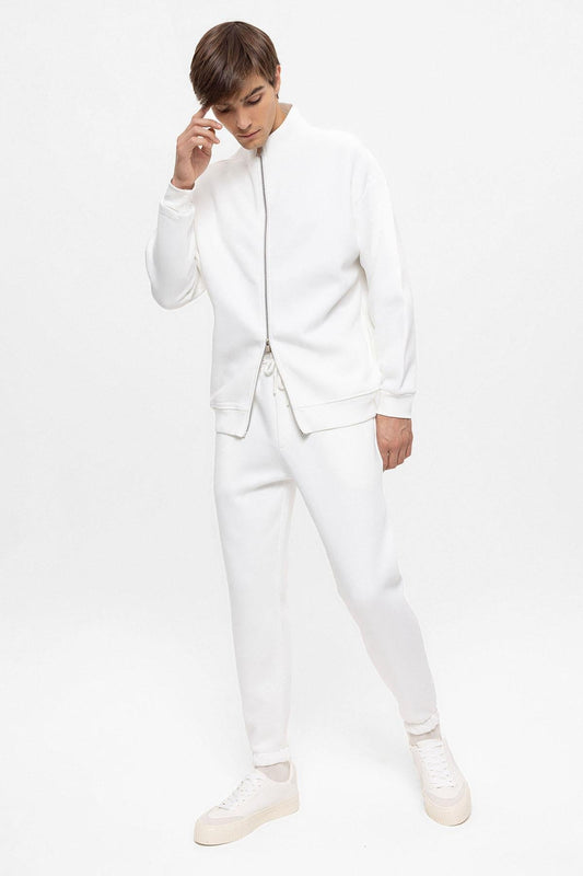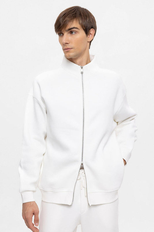 Men's Ecru High Collar Double Zipper Closure Sweatshirt