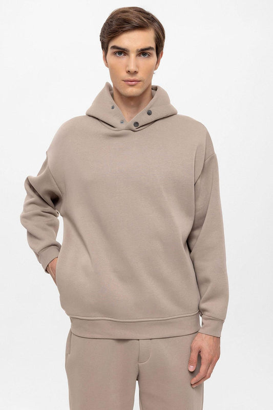 Men's Beige High Collar Double Zipper Closure Sweatshirt