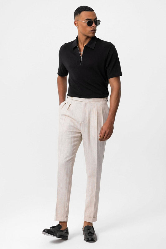 Men's Beige Polo Neck Slim Fit T-Shirt