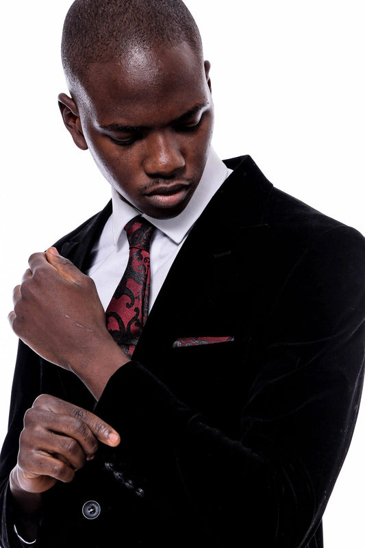 Wide Peak Lapel Velvet Burgundy Blazer