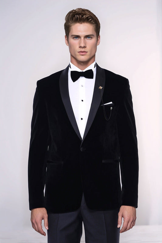 Peak Lapel Velvet Black Men Prom Blazer