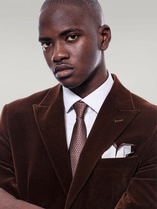 Wide Peak Lapel Velvet Brown Men Blazer -