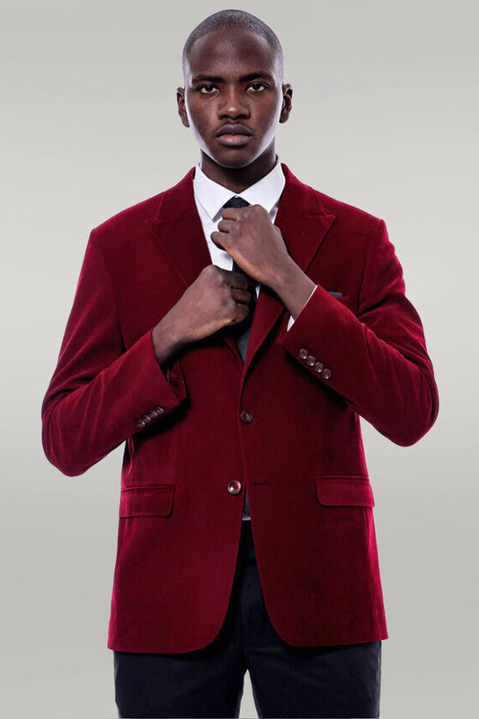 Wide Peak Lapel Velvet Burgundy Men Blazer