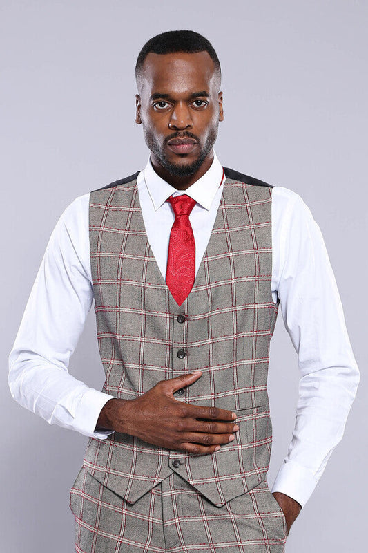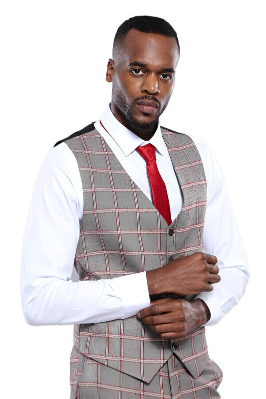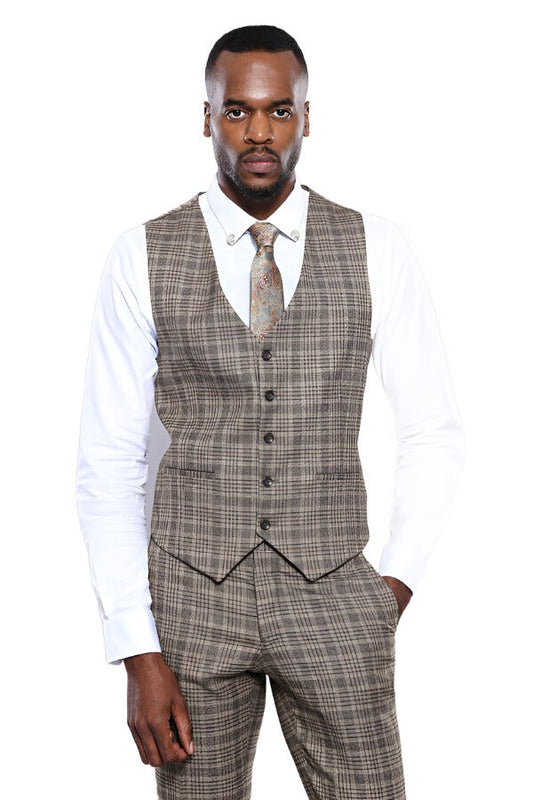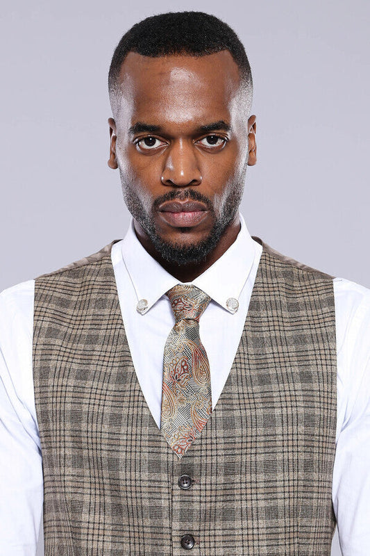 Plaid Double Breasted Collared Navy Blue Men Vest