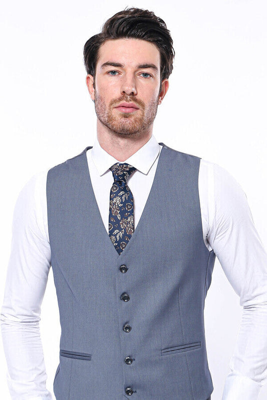 Patterned Double Breasted Navy Blue Men Trousers Vest Set