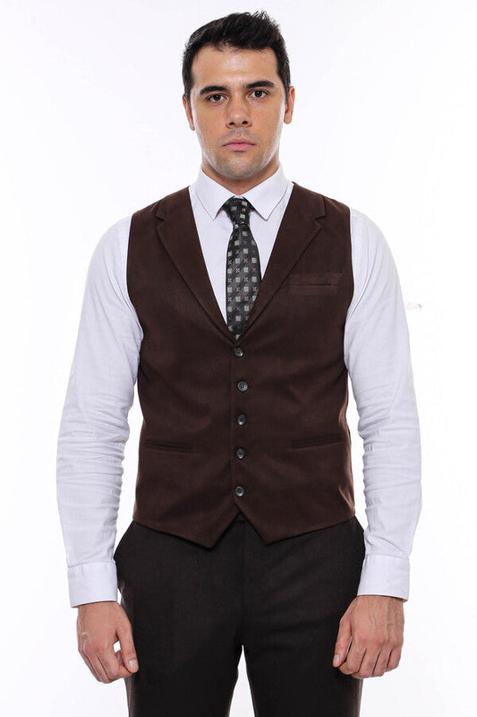 Patterned Double Breasted Dark Navy Men Vest Trousers Set