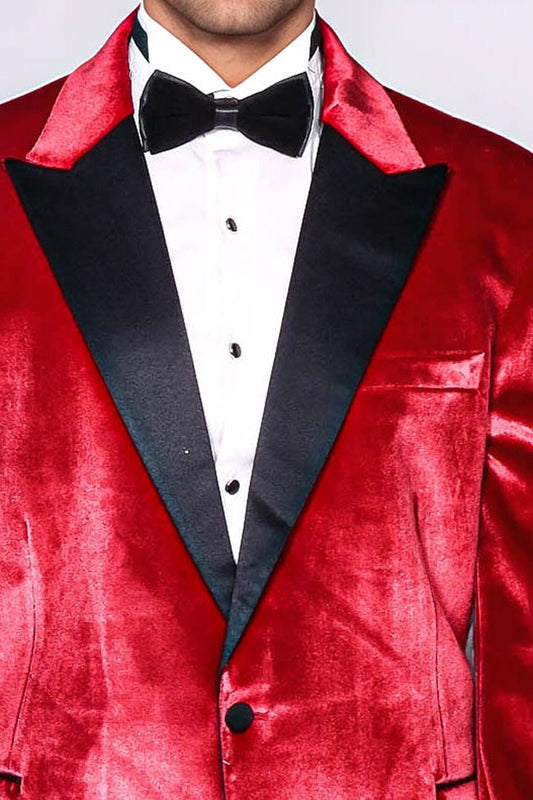 Peak Lapel Velvet Red Men Wedding Tuxedo Blazer