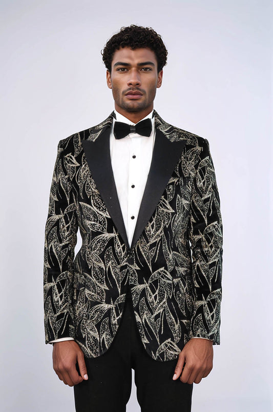 Floral Patterned Velvet Black Men Wedding Tuxedo Blazer