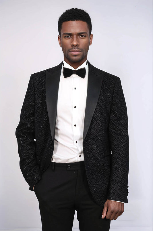 Shiny Patterned Black Men Wedding Tuxedo Blazer