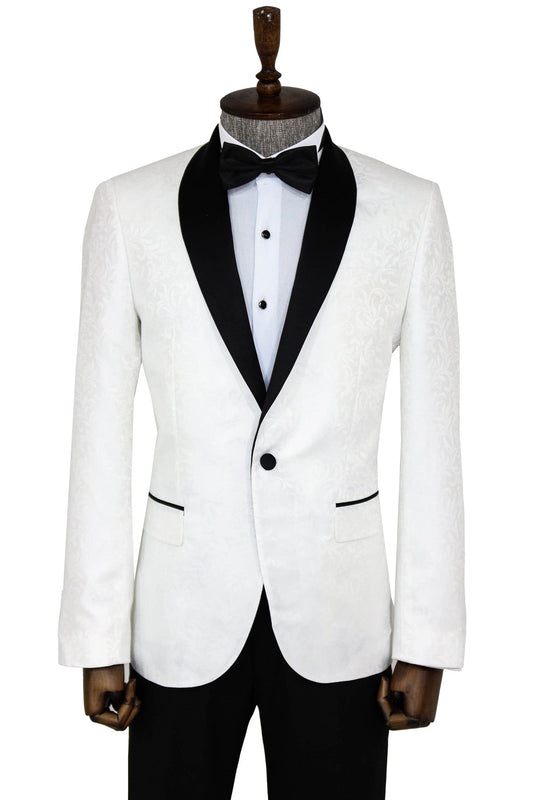 Shawl Lapel Floral Patterned White Men Wedding Tuxedo Blazer