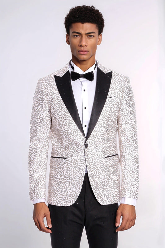 Floral Patterned Peak Lapel White Men Wedding Tuxedo Blazer