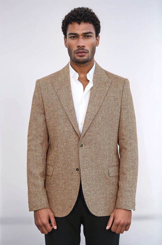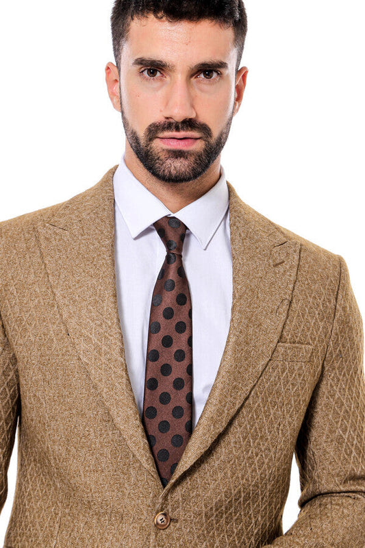 Wool Patterned Slim Fit Light Brown Men Blazer