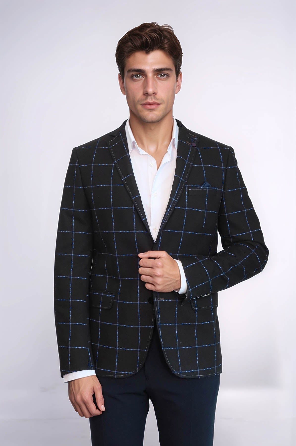 2 Button Plaid Wool Brown Jacket-Wessi