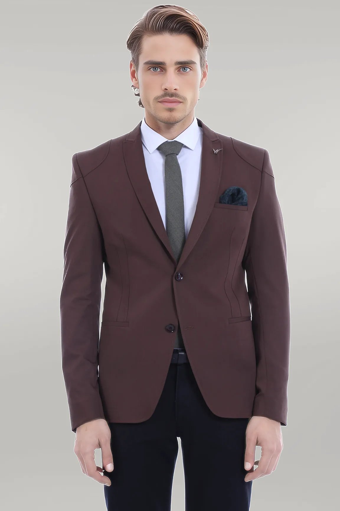 2 Button Shoulder Split Cotton Brown...