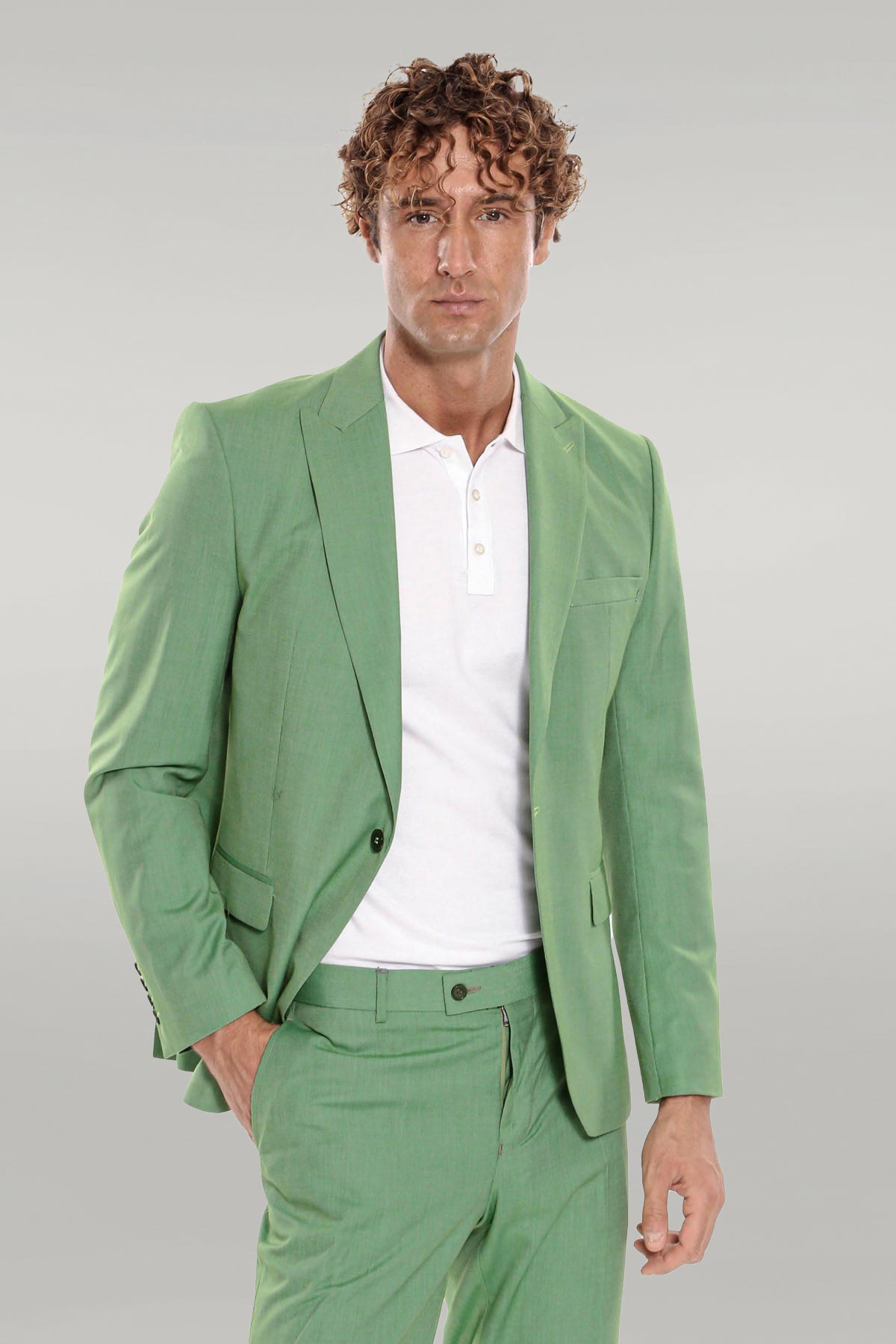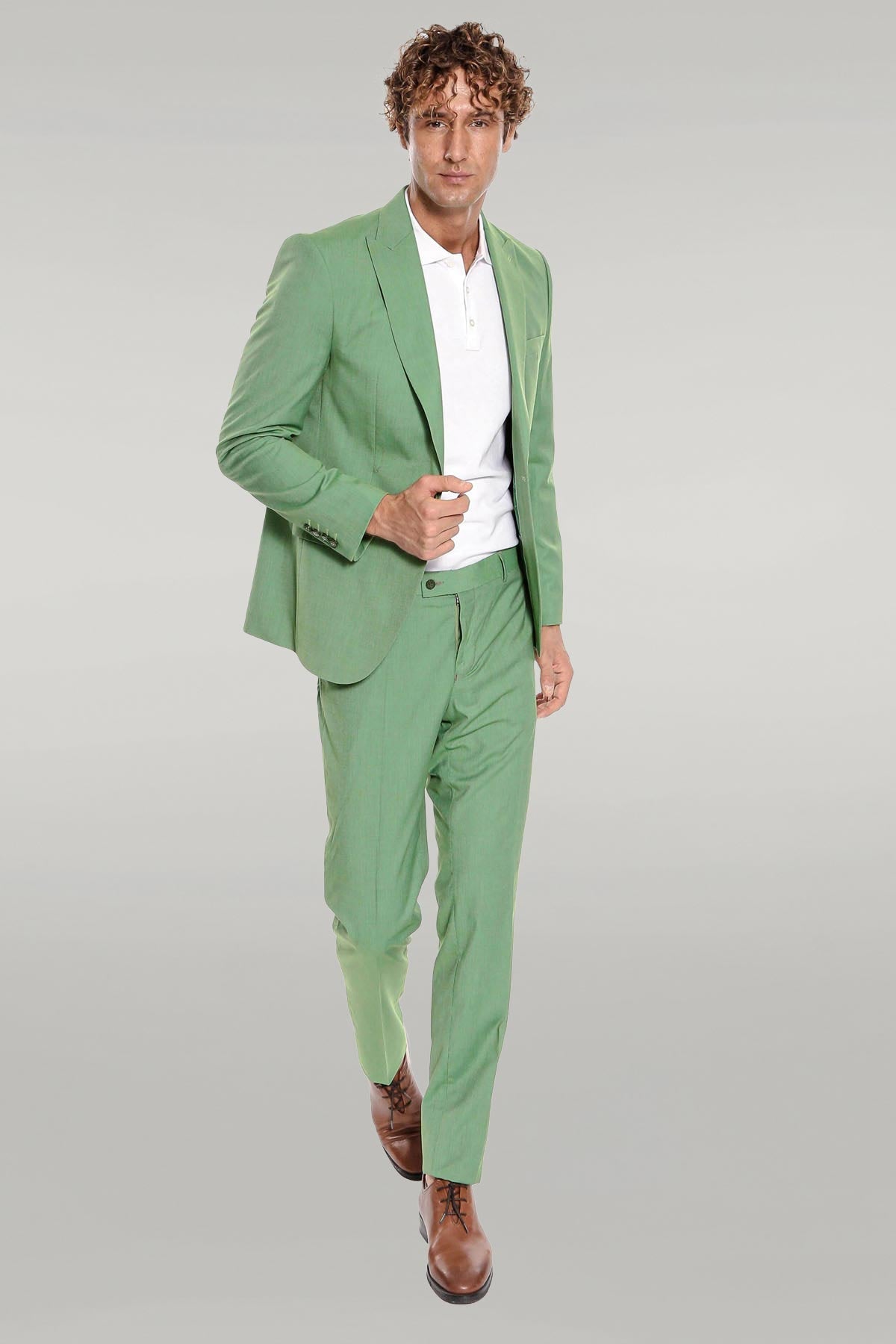 2 Piece Patterned Slim Fit Green...