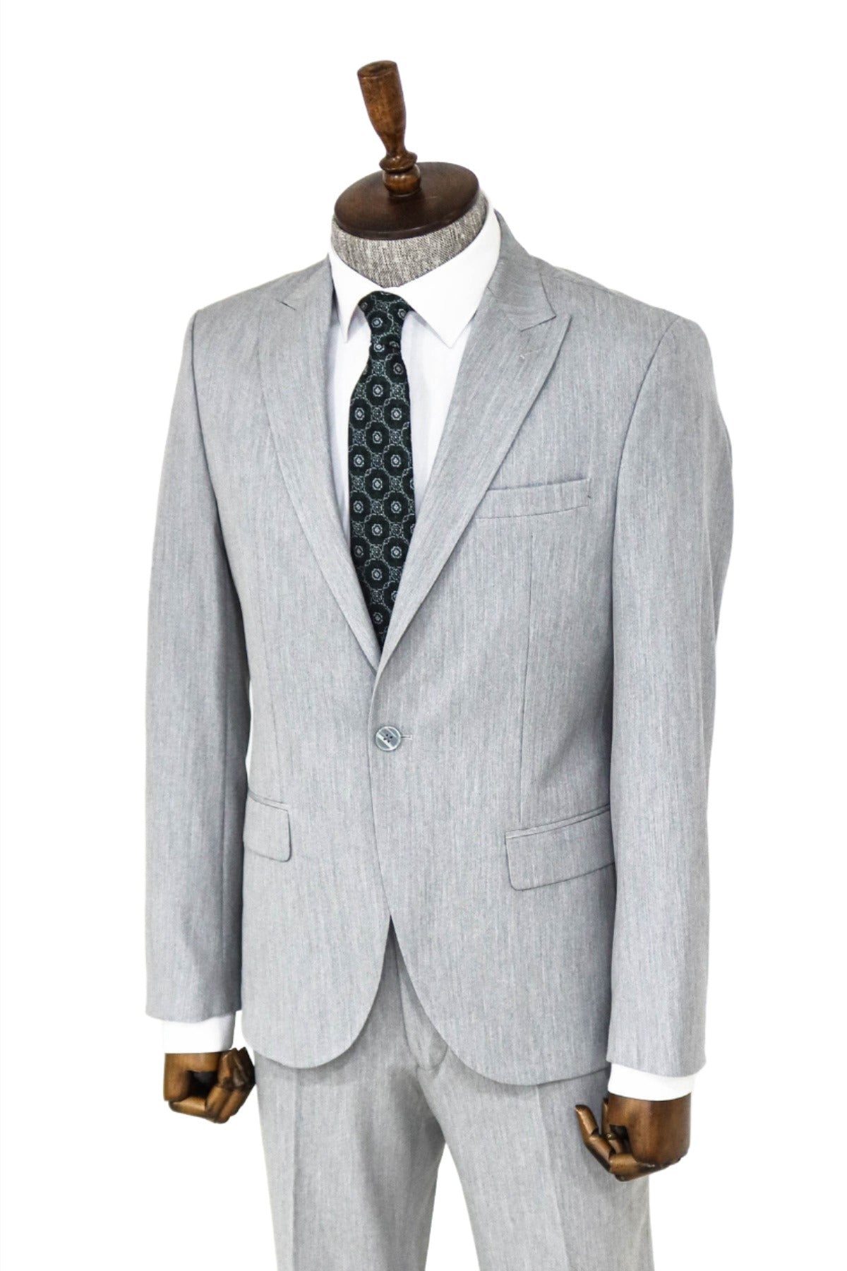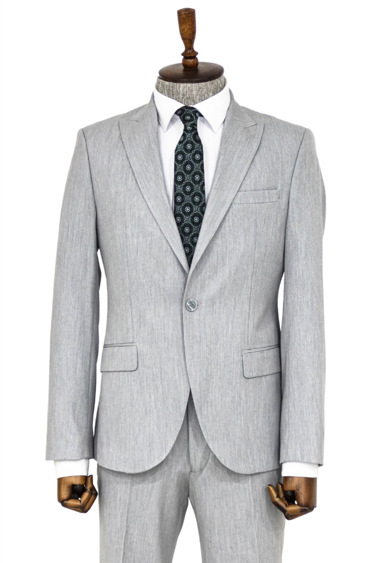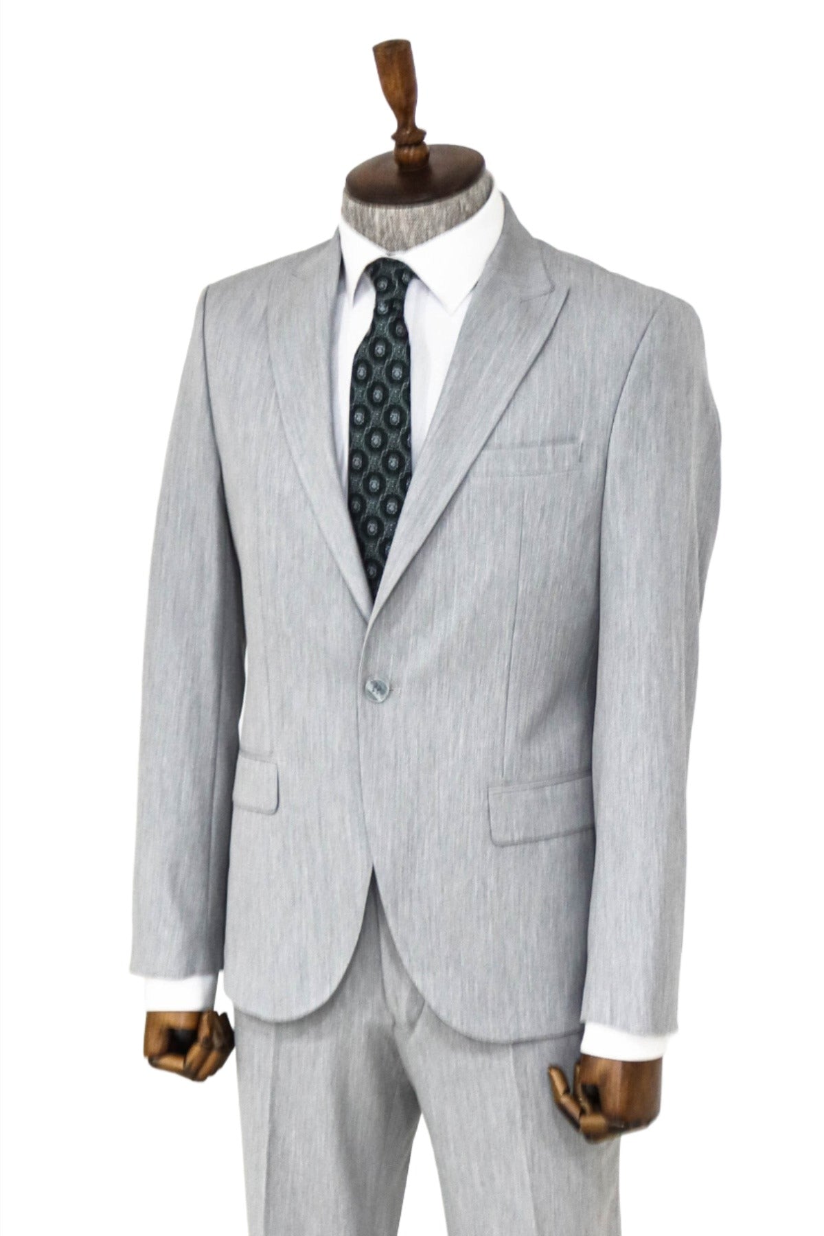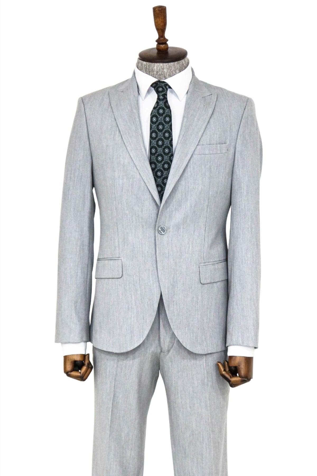 2 Piece Plain Slim Fit Grey...