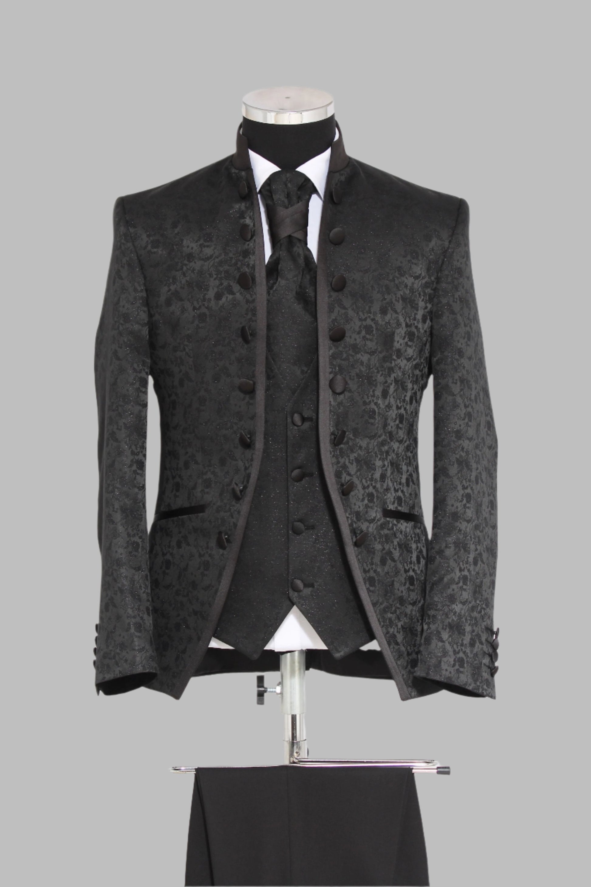 3-Piece Shiny Floral Patterned Mandarin Collar...