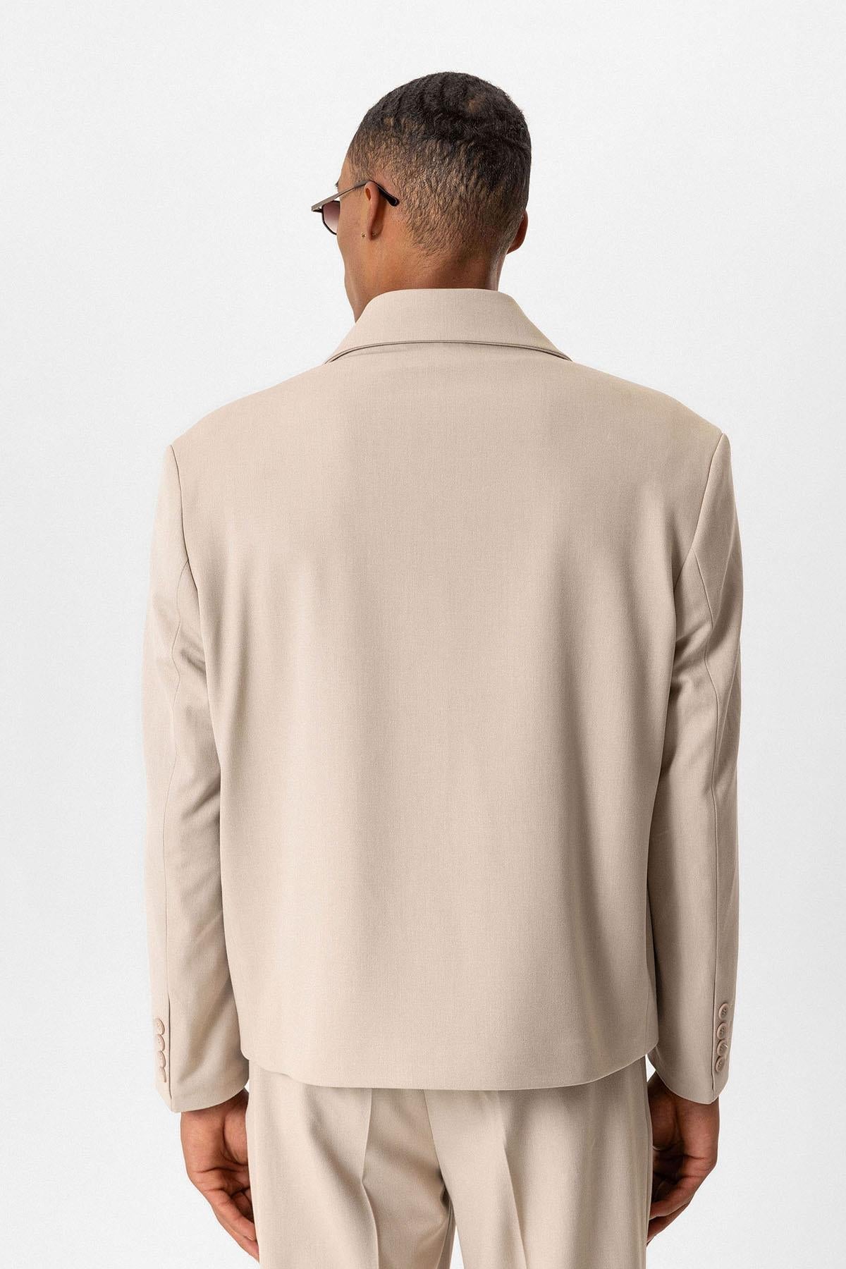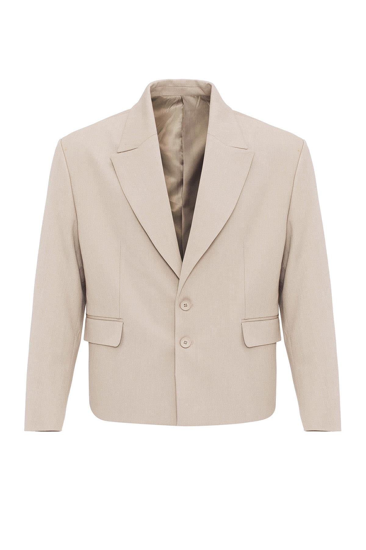 Beige Crop Fit Men's Blazer Jacket
