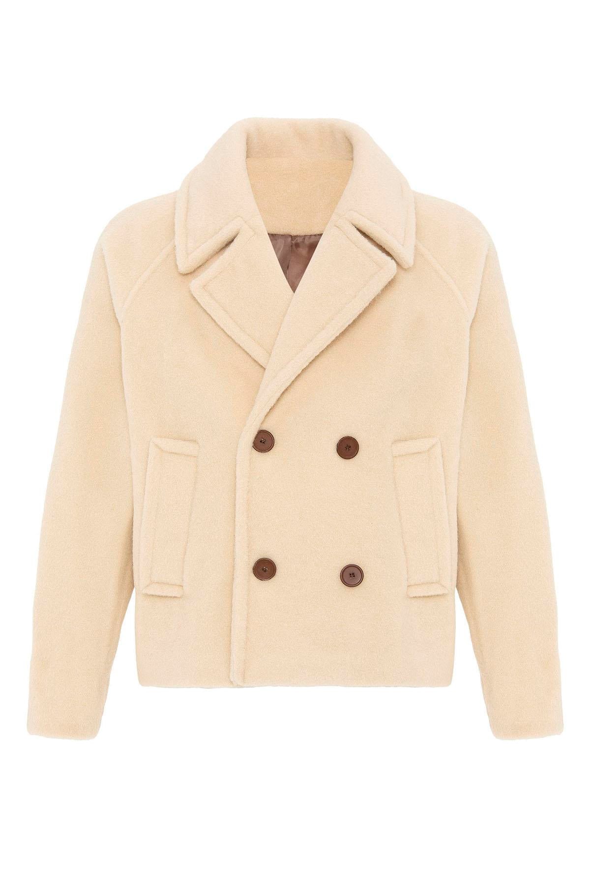 Beige Double-Breasted Crop Fit Men's Jacket