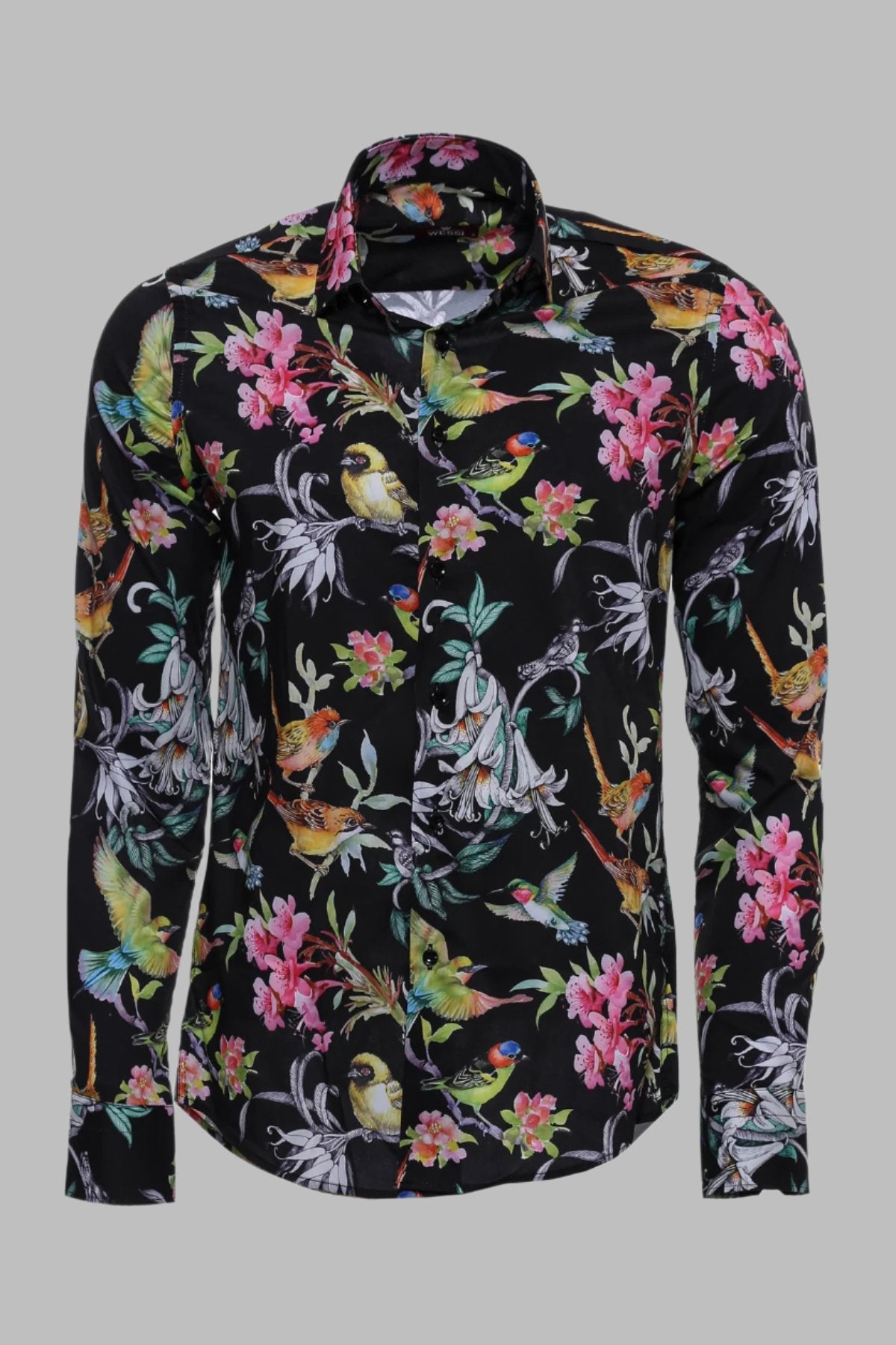 Birds And Flowers Patterned Slim Fit...
