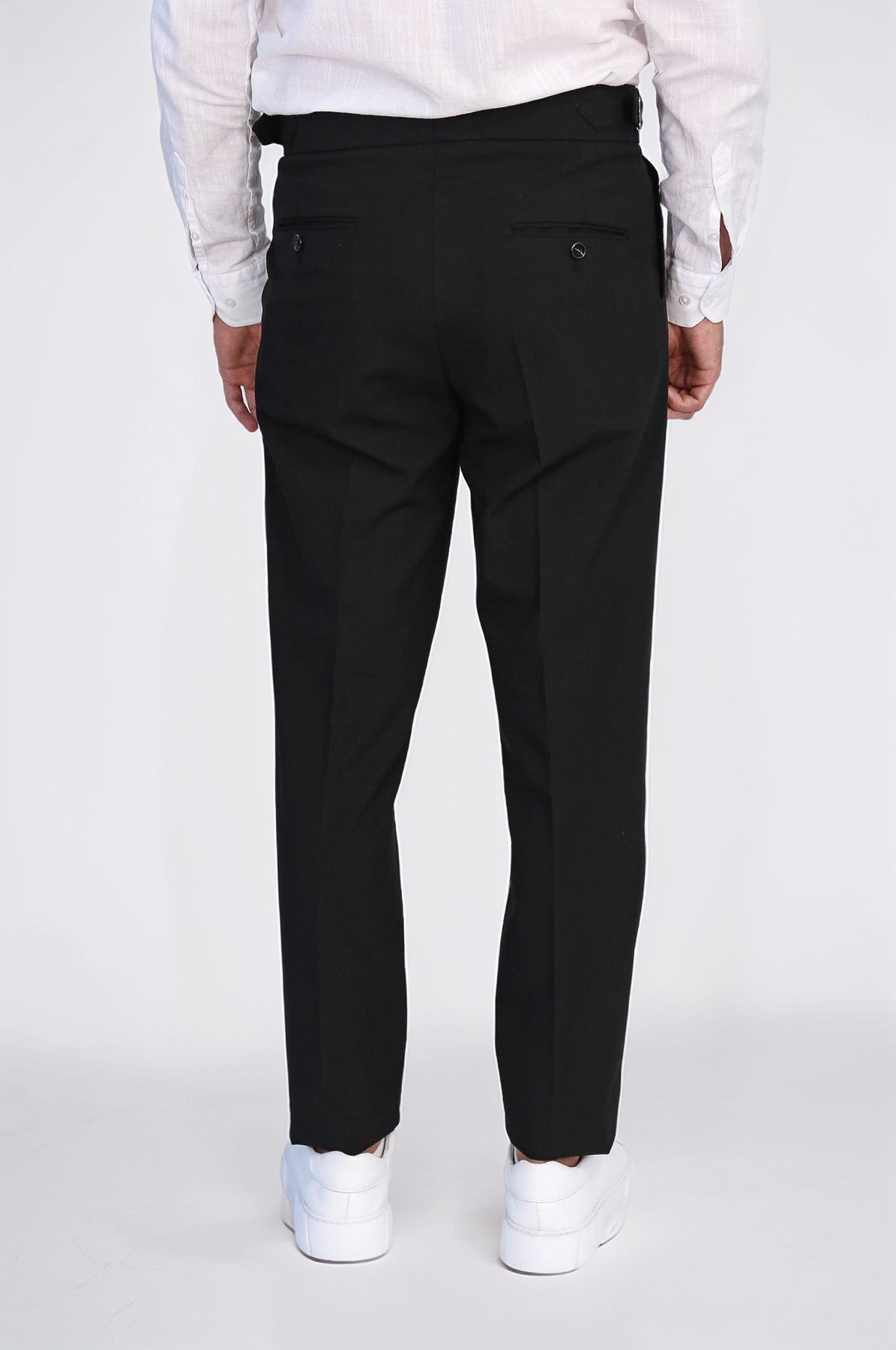 Black Double-Pleated High-Waisted Slim Fit Trousers...