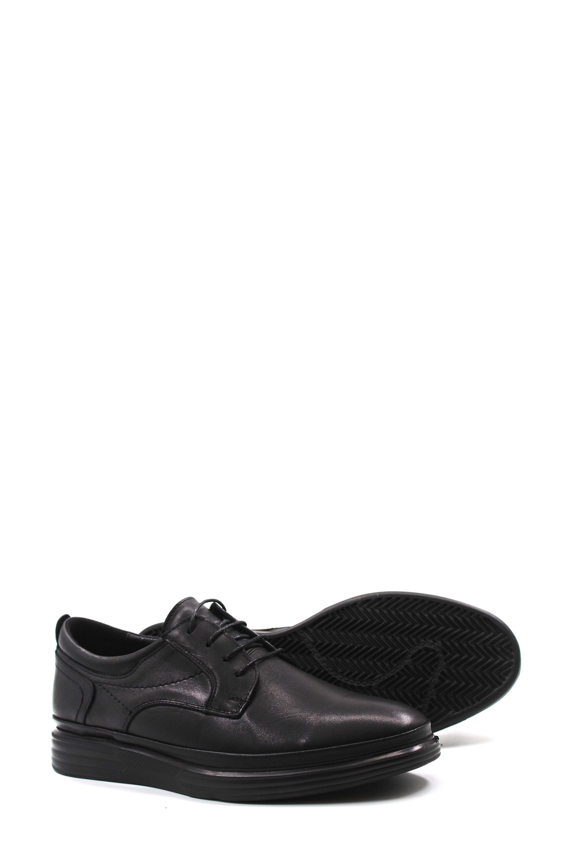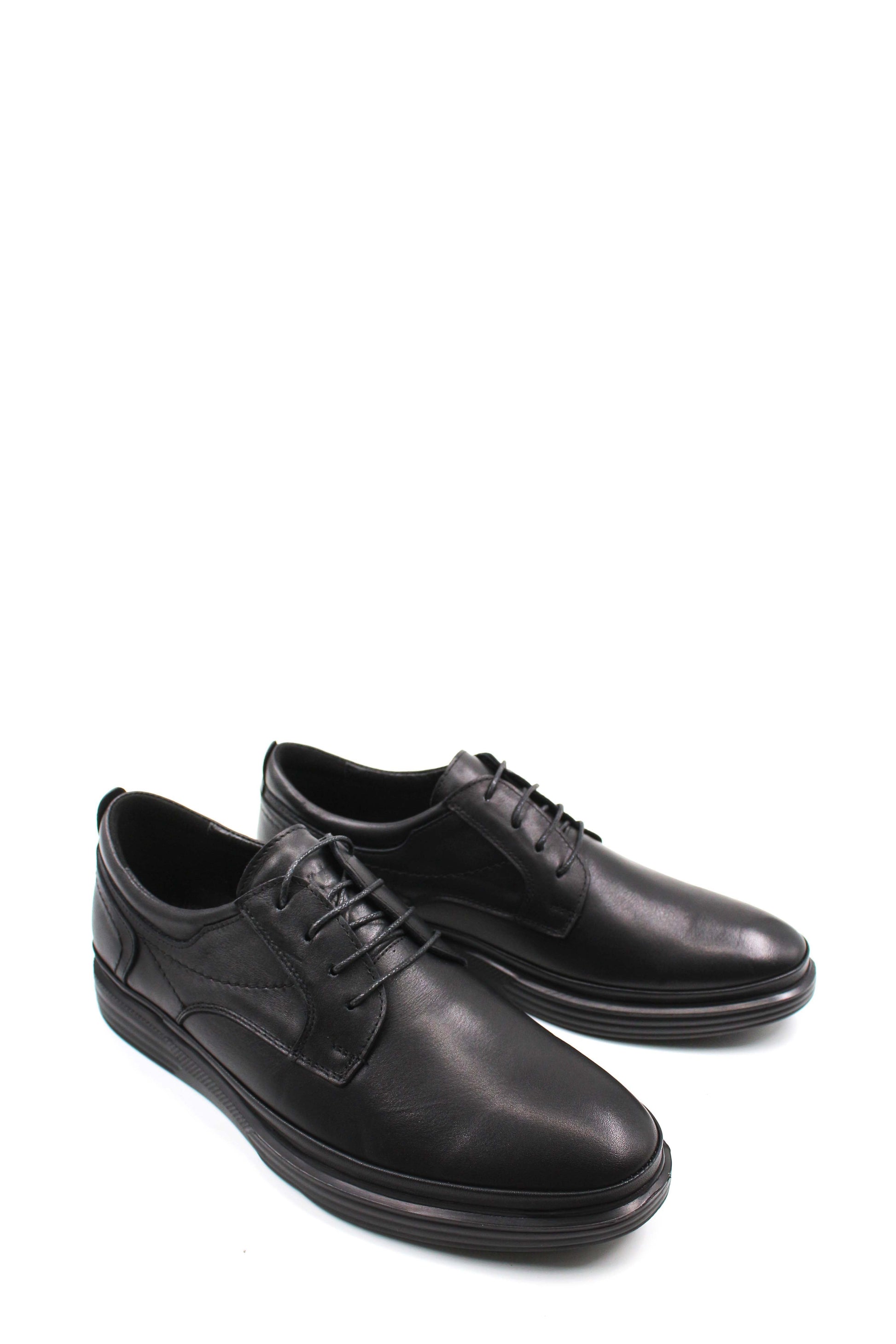 Black Leather Casual Derby Shoes-Wessi