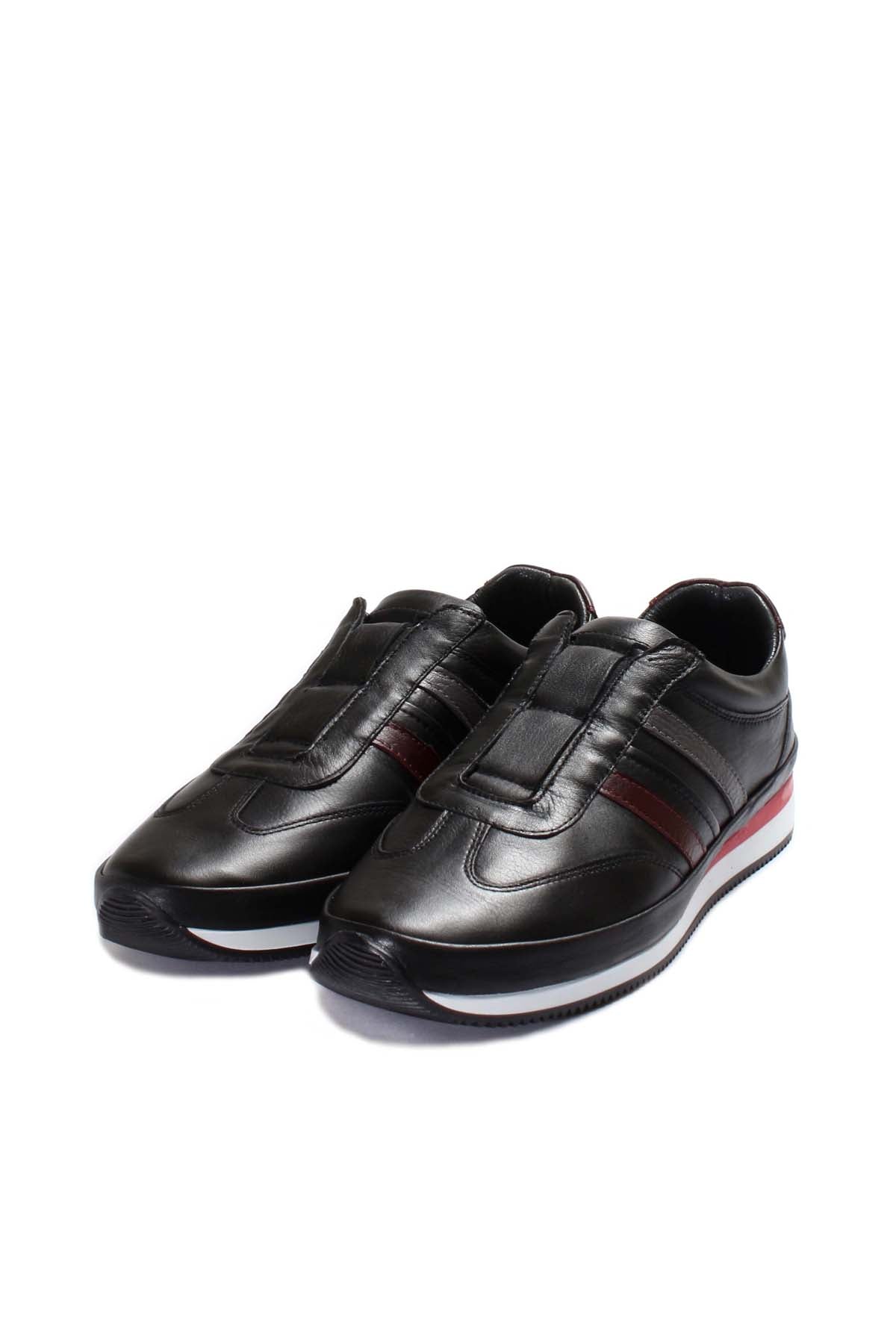 Black Leather Slip-On Sports Shoes Wessi