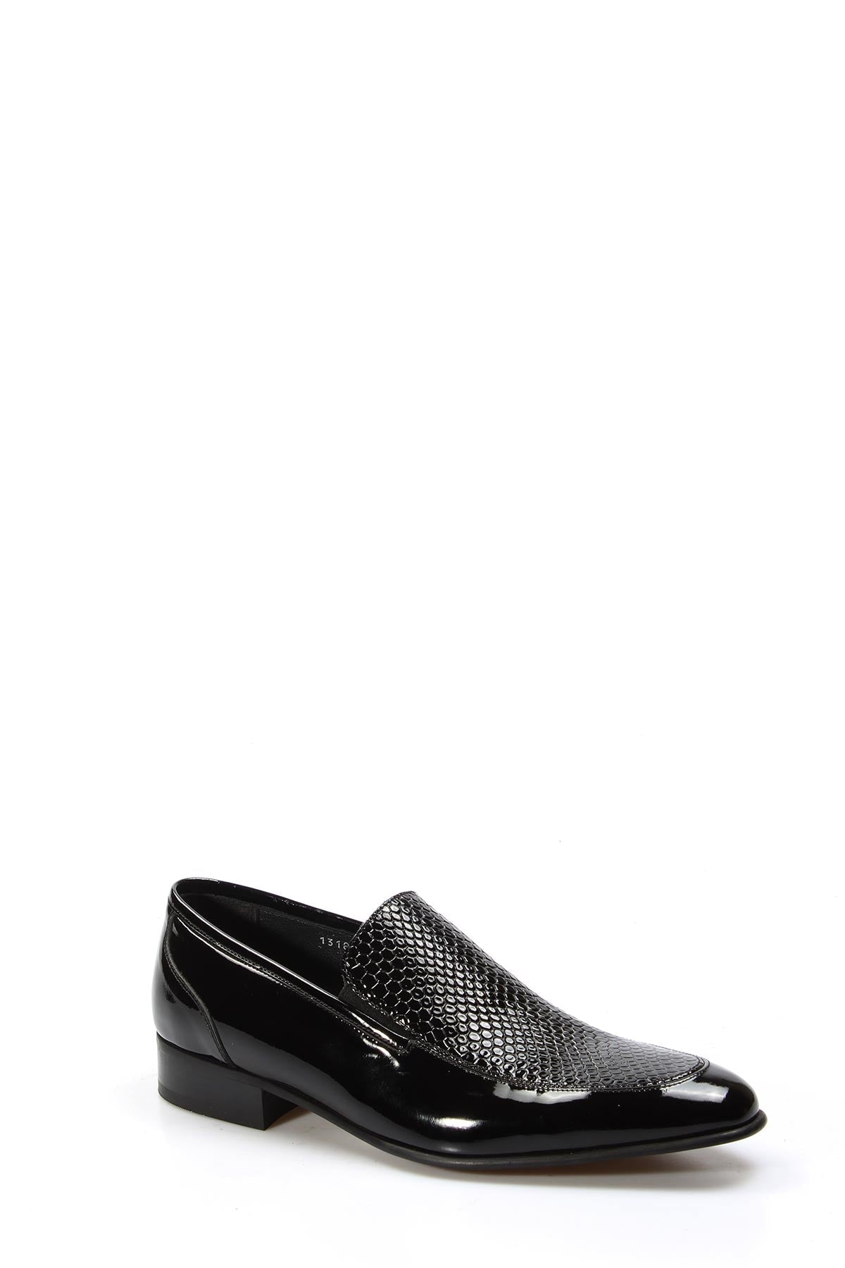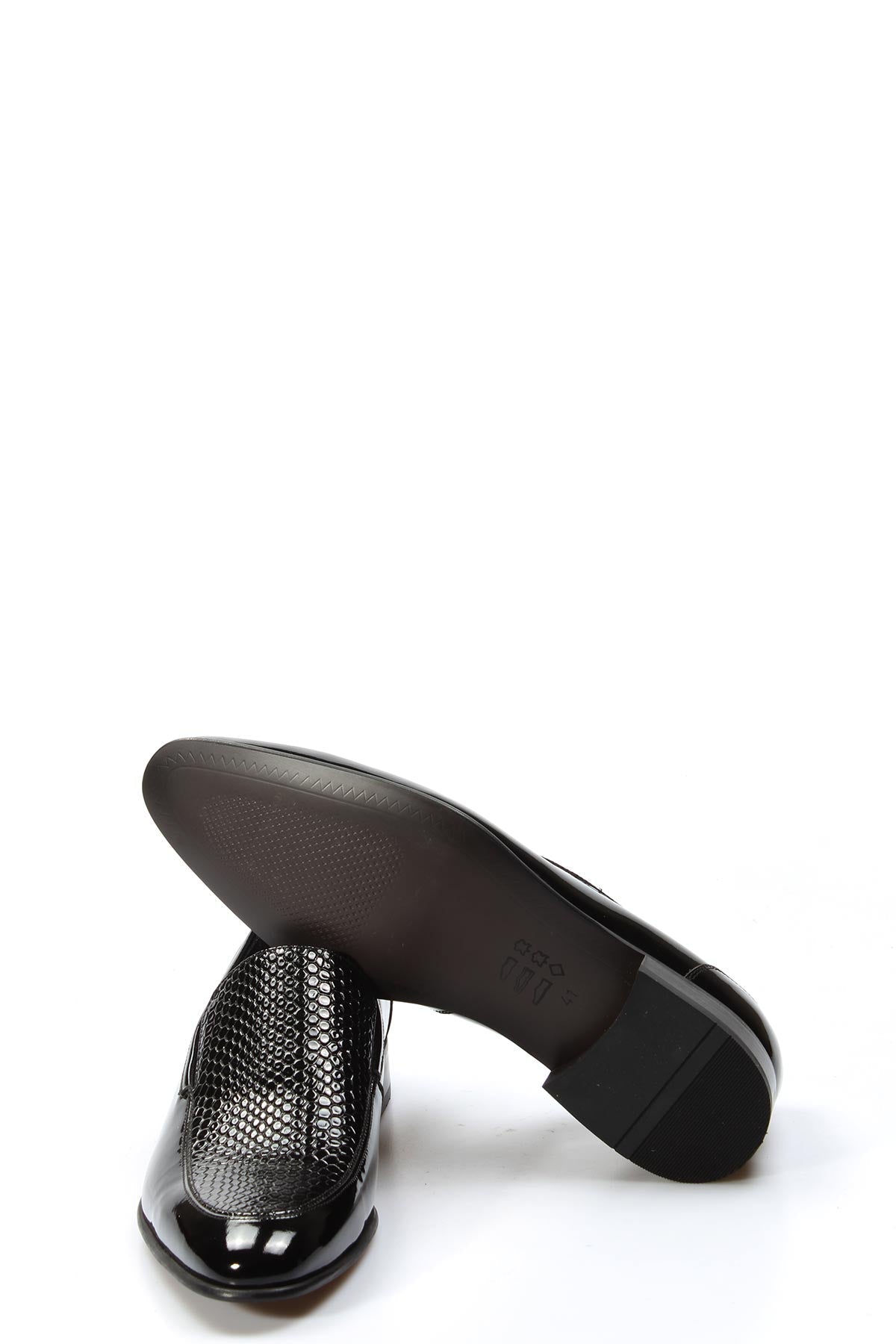 Black Patent Leather Textured Loafers Wessi