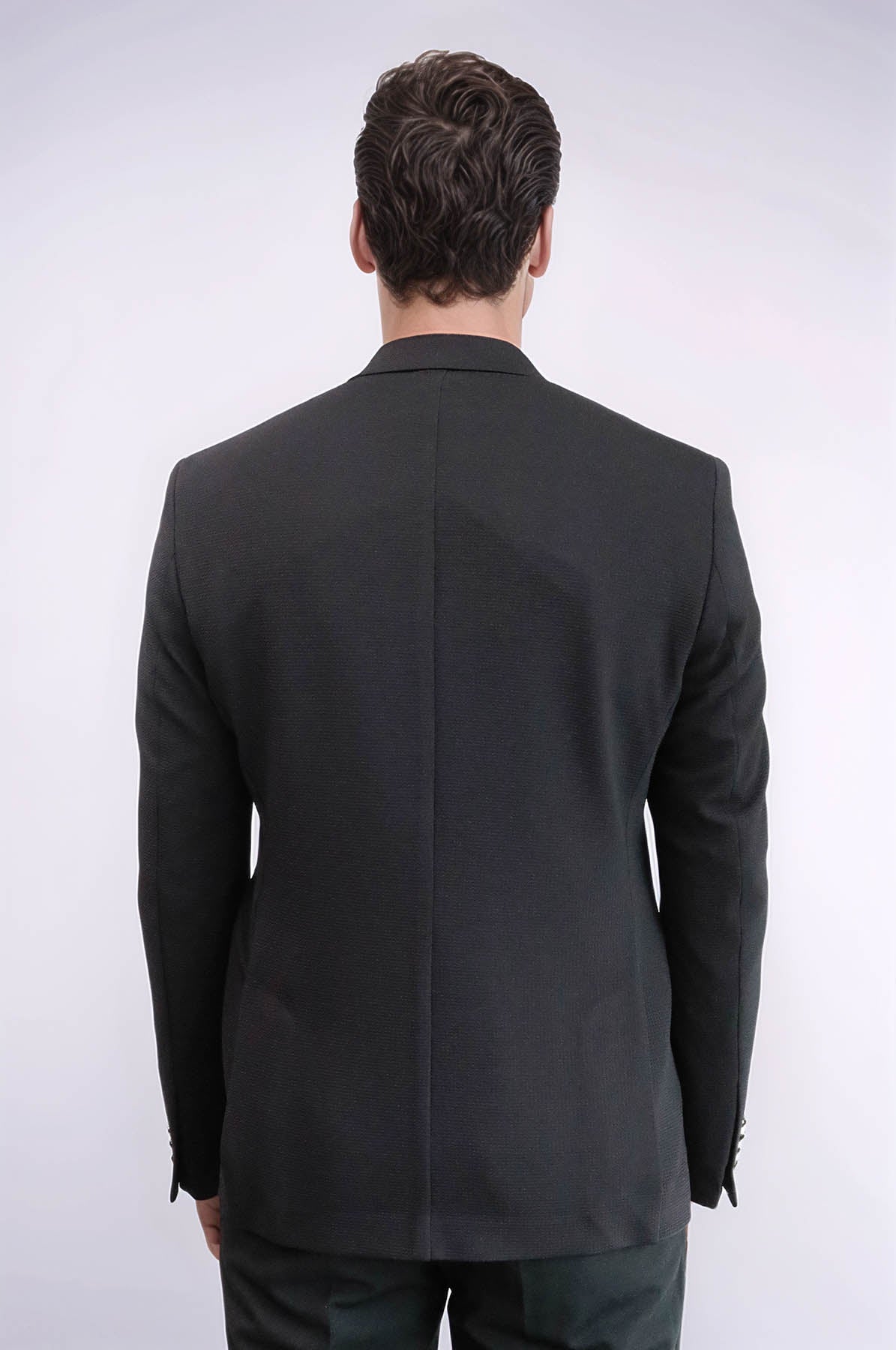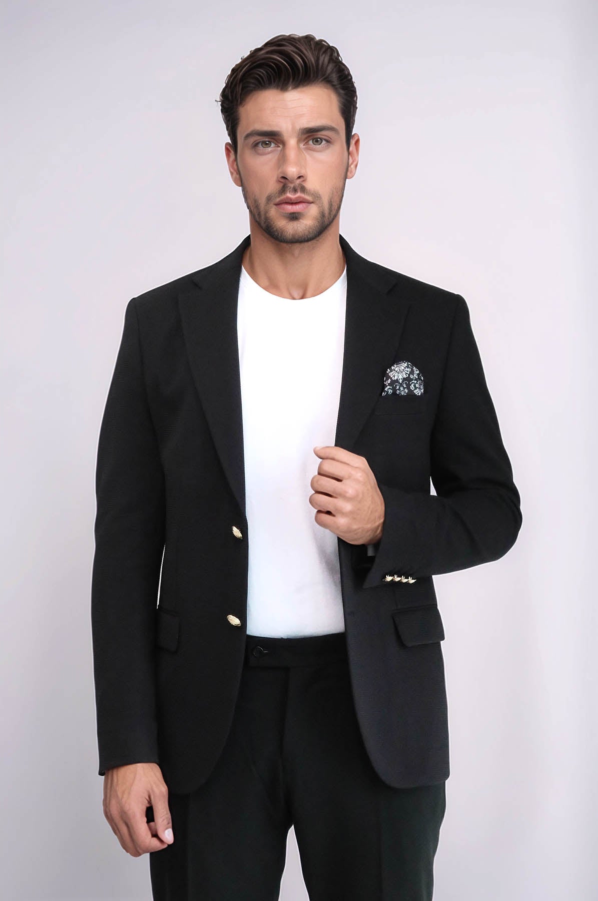 Black Textured Gold Metal Button Slim...