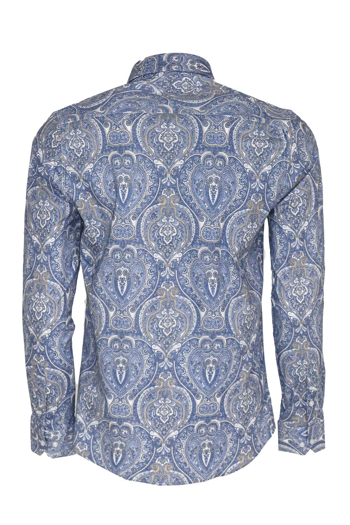 Blue Damask Pattern Slim Fit Shirt...