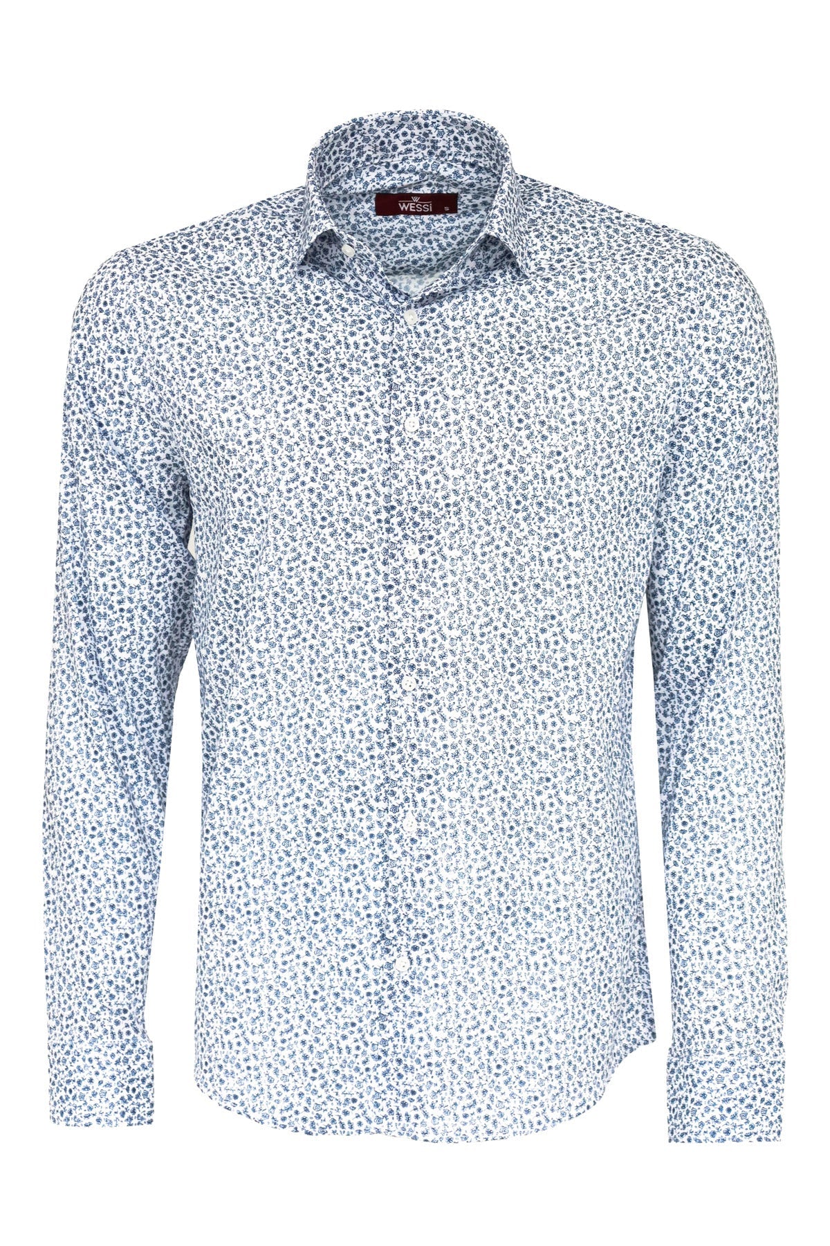 Blue Floral Patterned Slim Fit White...