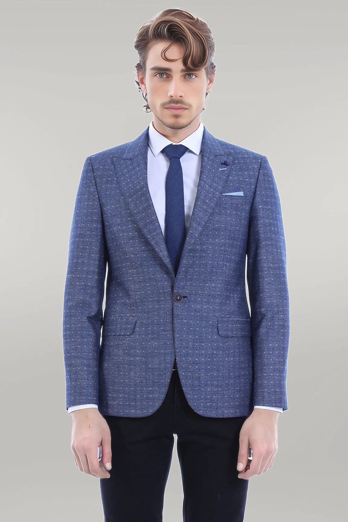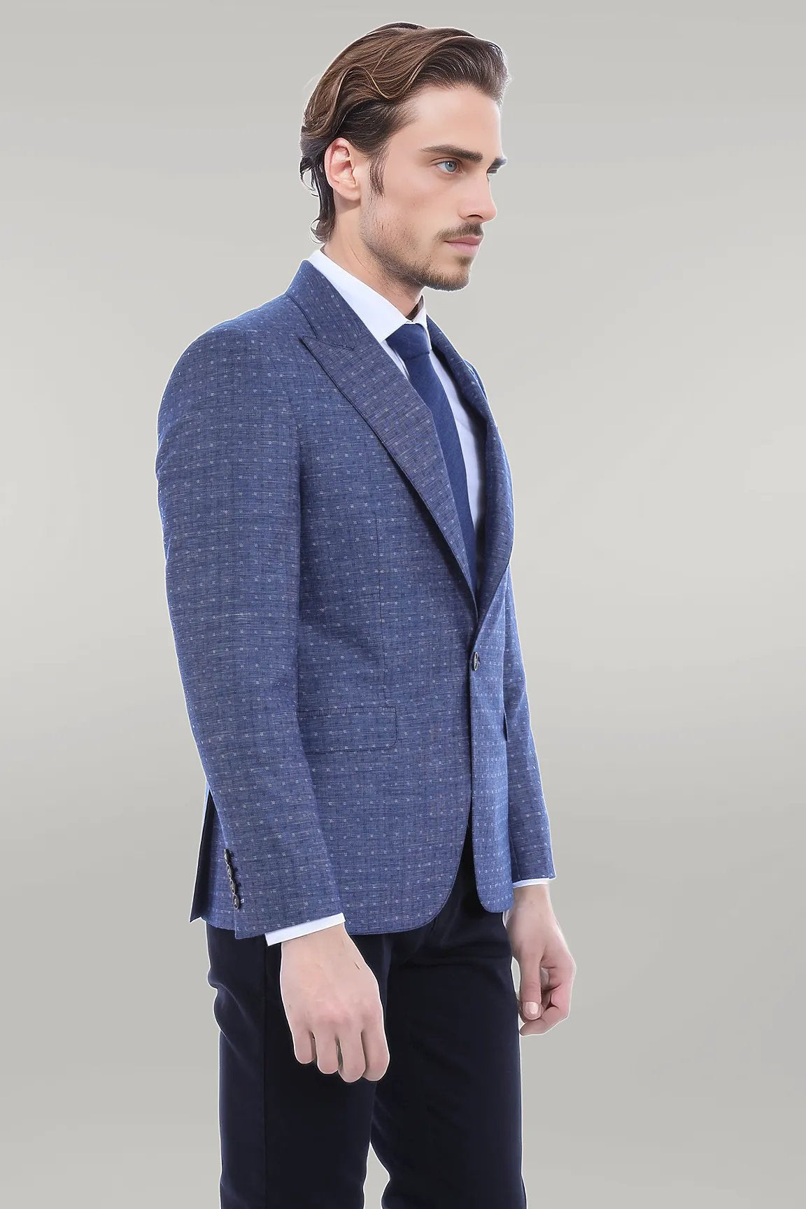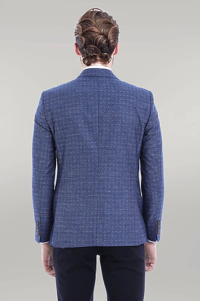 Blue Linen Dot Patterned Jacket