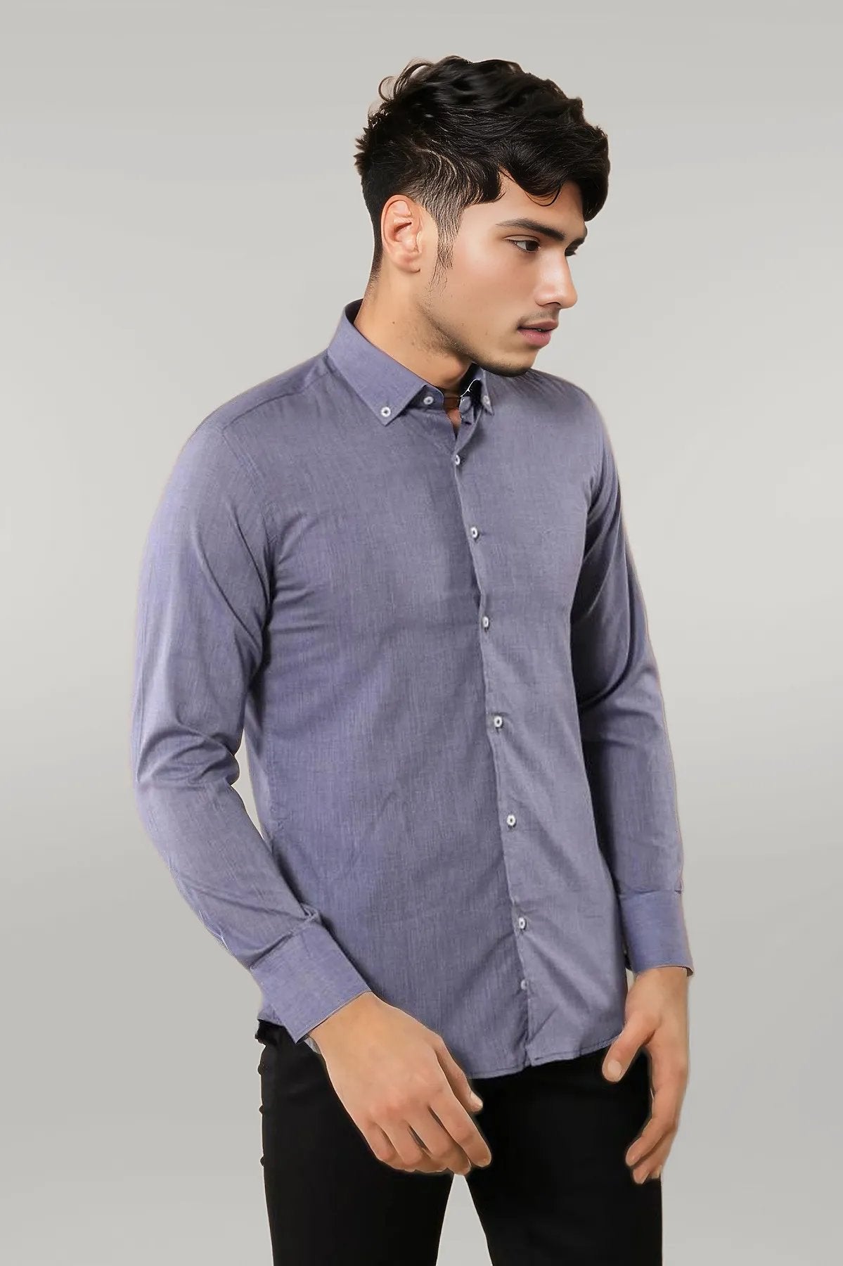 Blue Plain Linen Men's Shirt