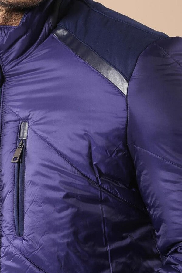 Blue Quilted Down Coat