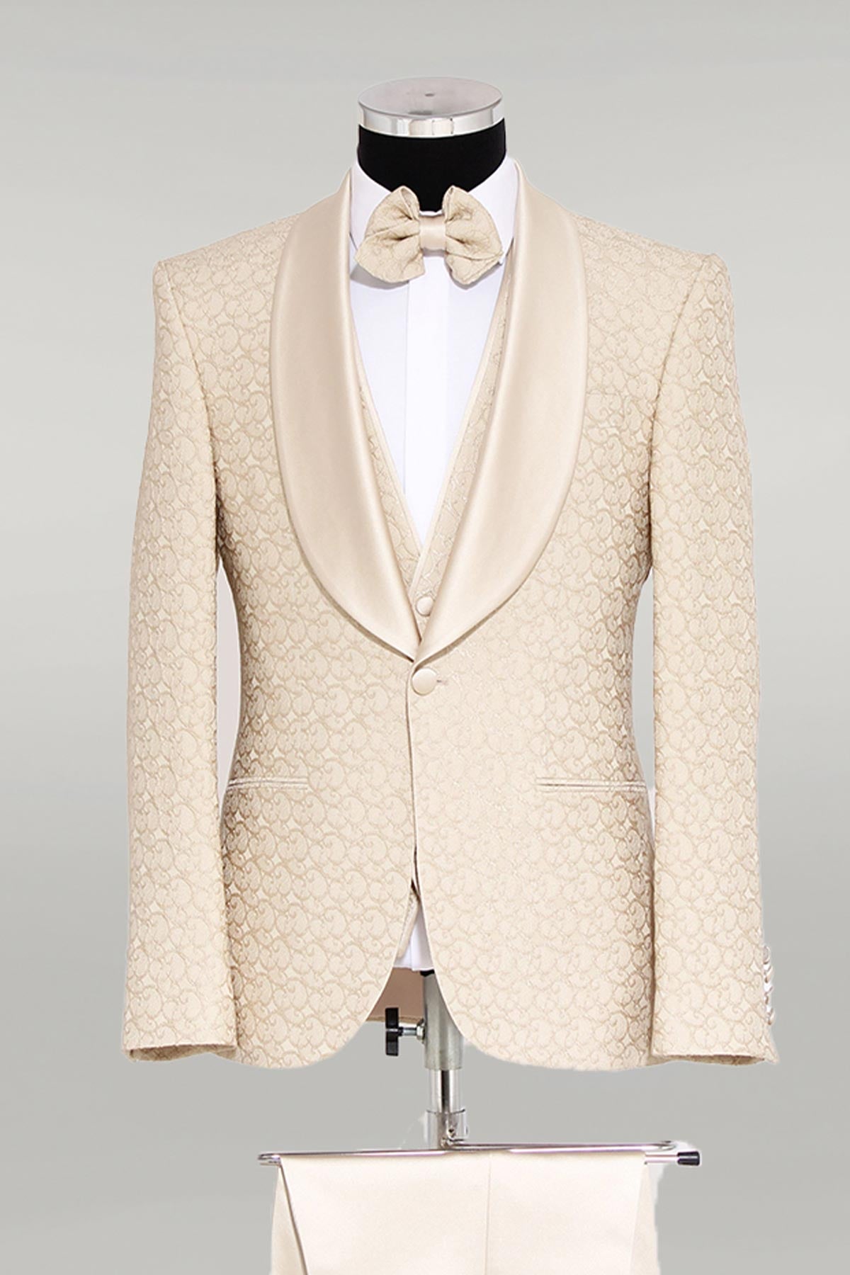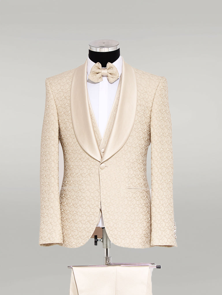 Brocade Double-Breasted Satin Lapel Ivory Men's...