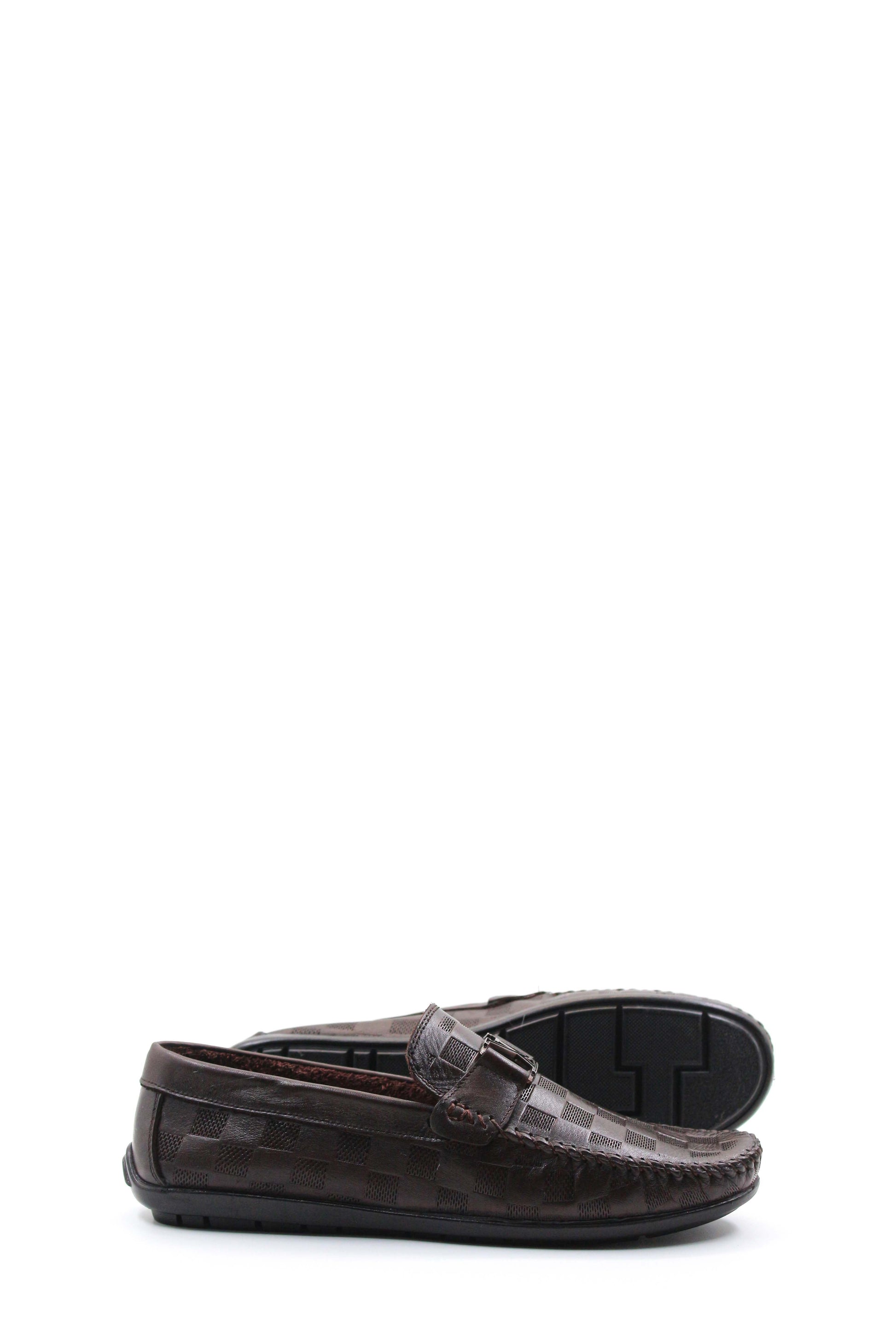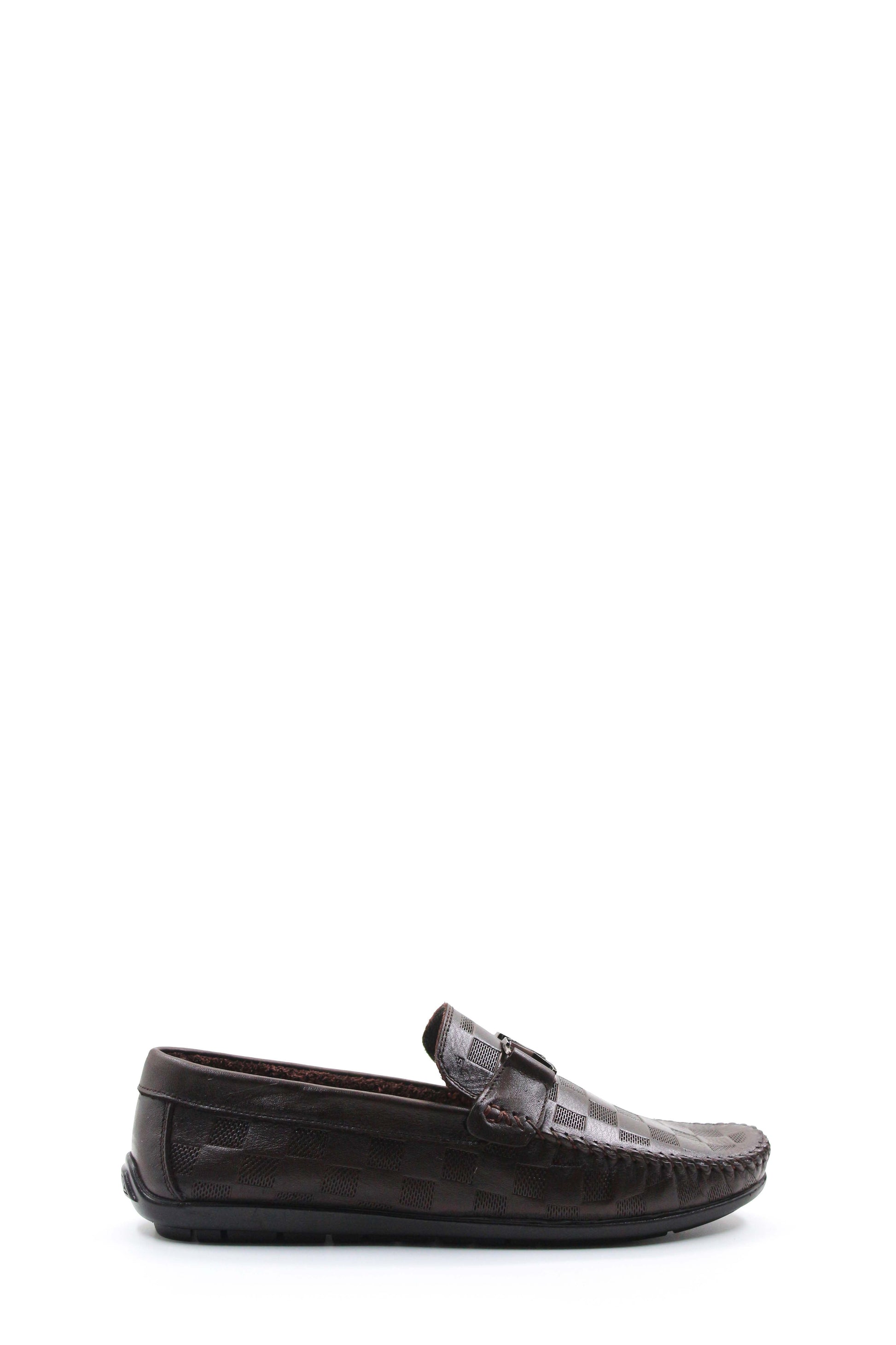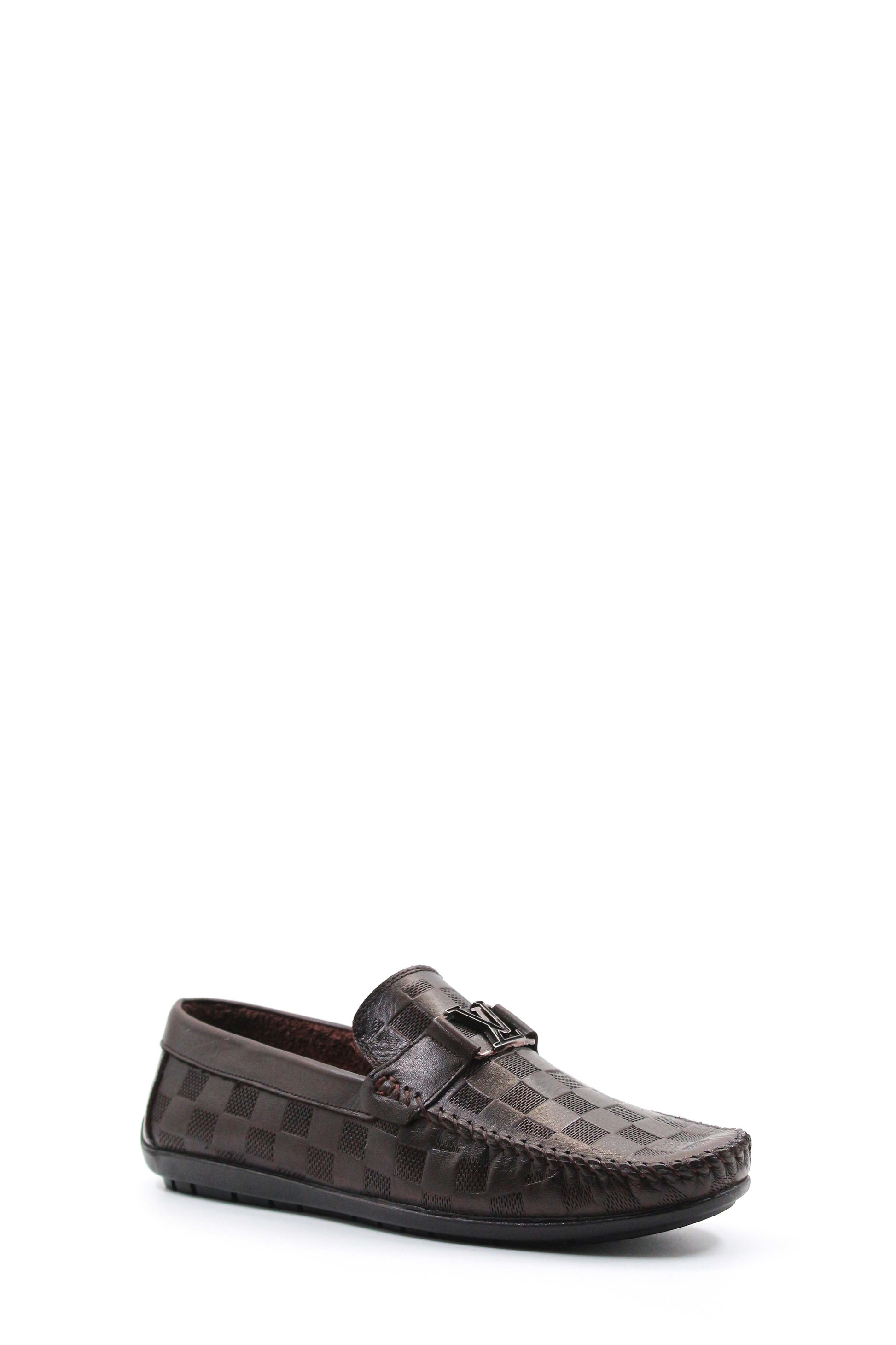 Brown Checkered Leather Moccasins Wessi