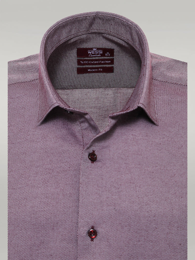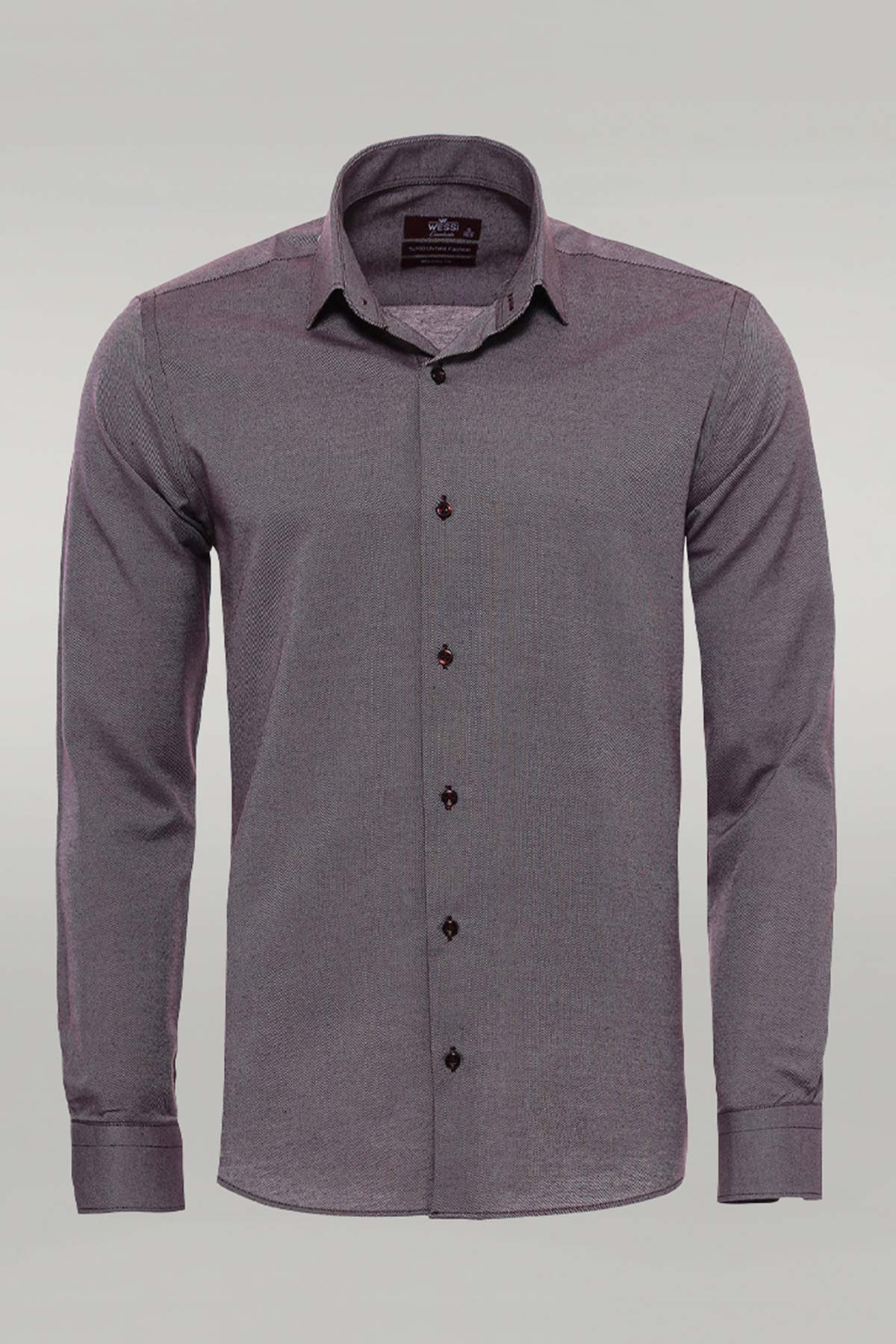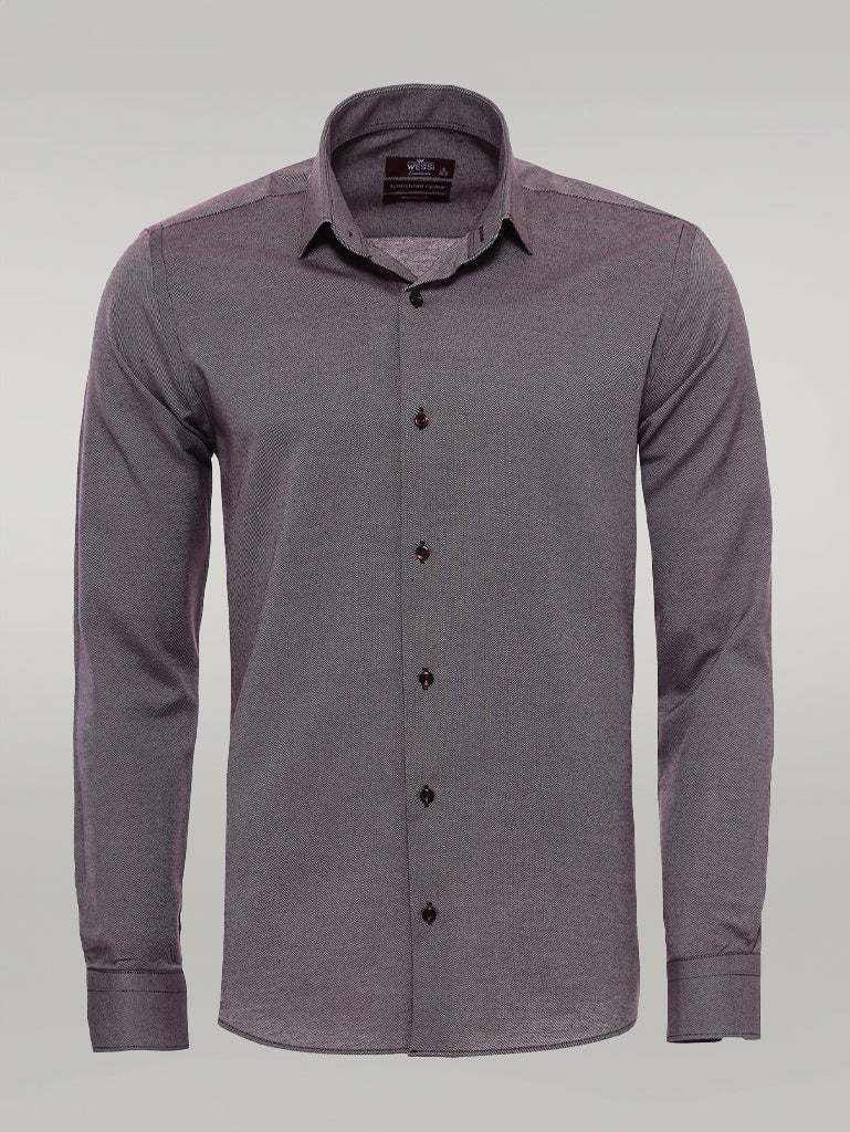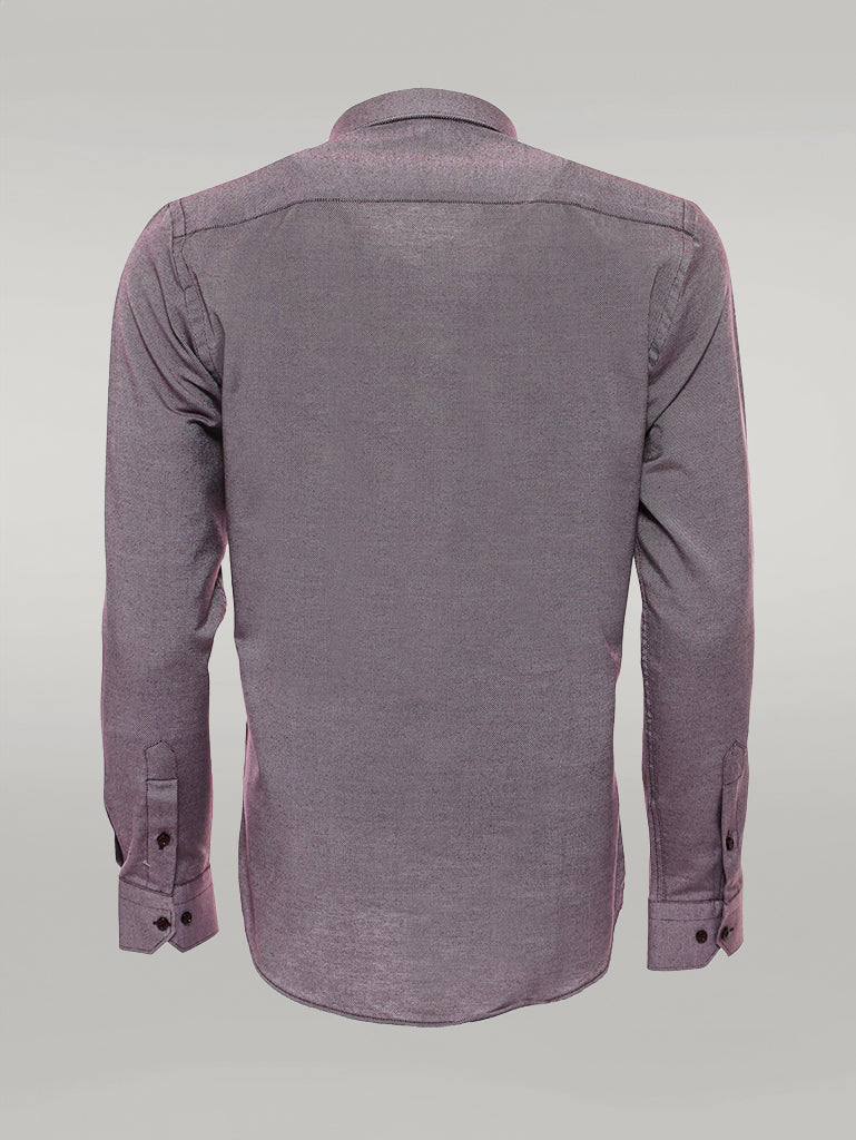 Burgundy Patterned Long Sleeves Slim-Fit Shirt