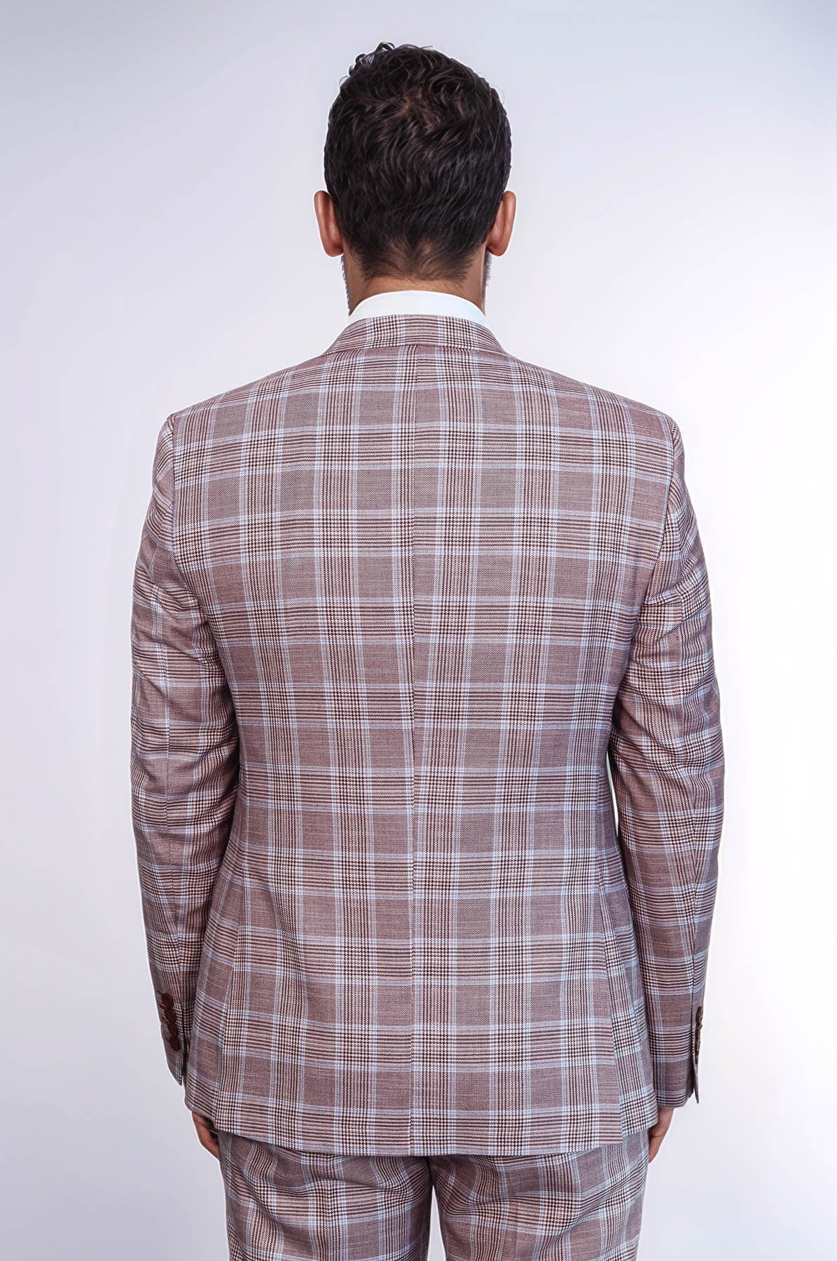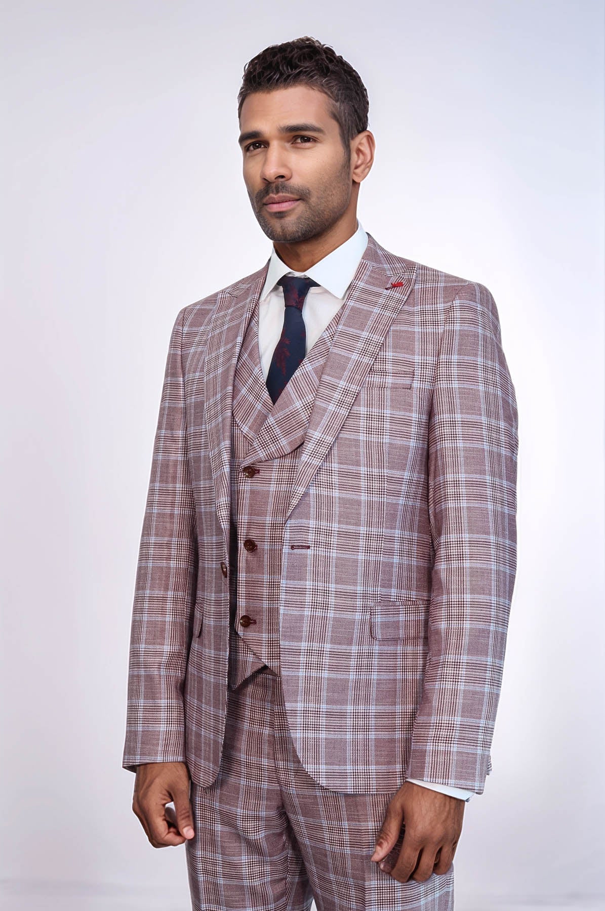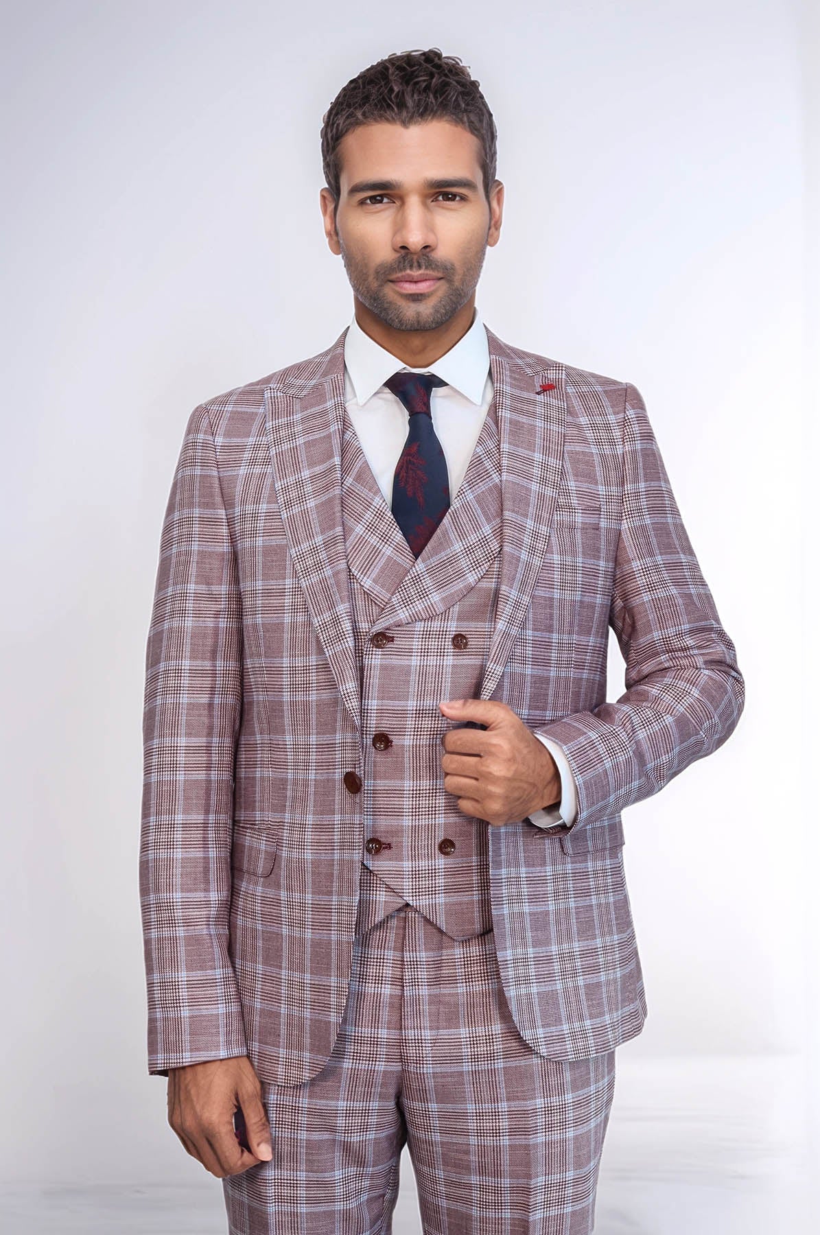 Burgundy Plaid Vested Slim Fit Italian...