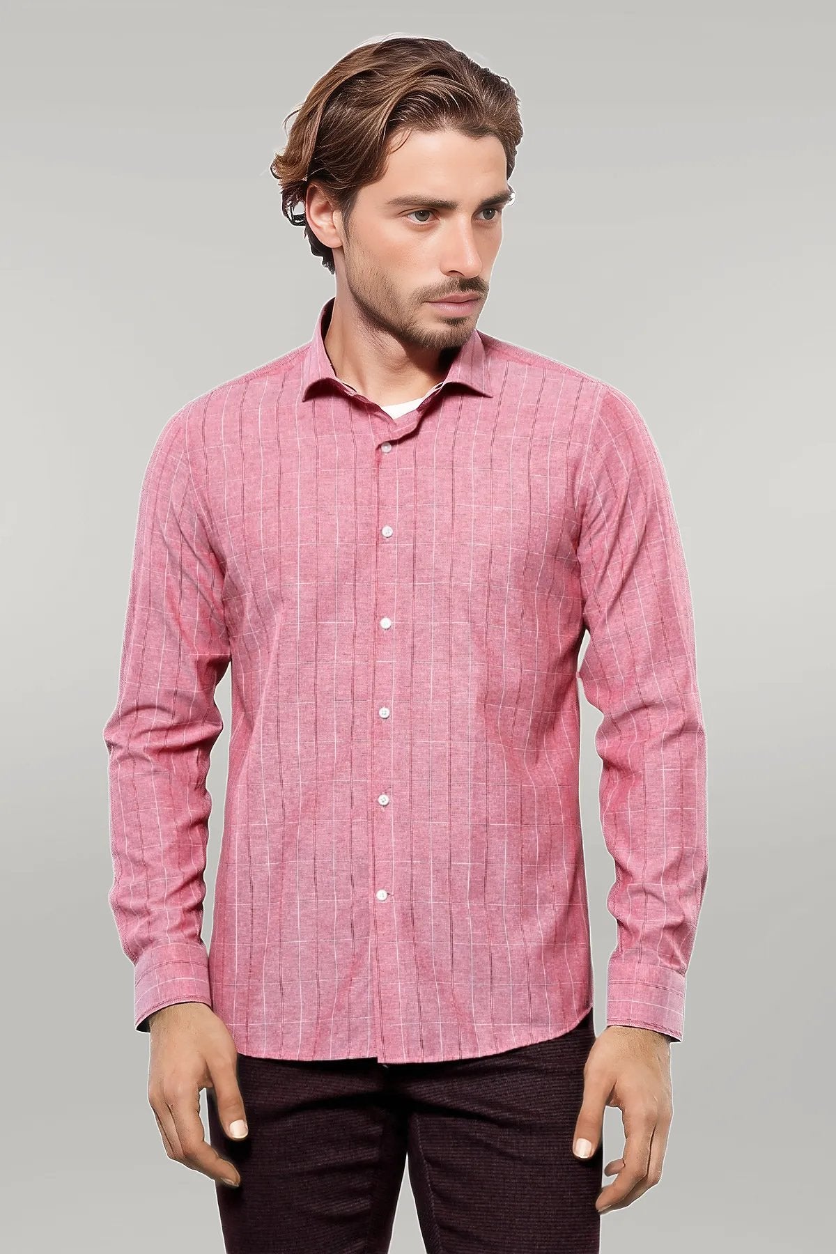 Checked Light Burgundy Men's Shirt |