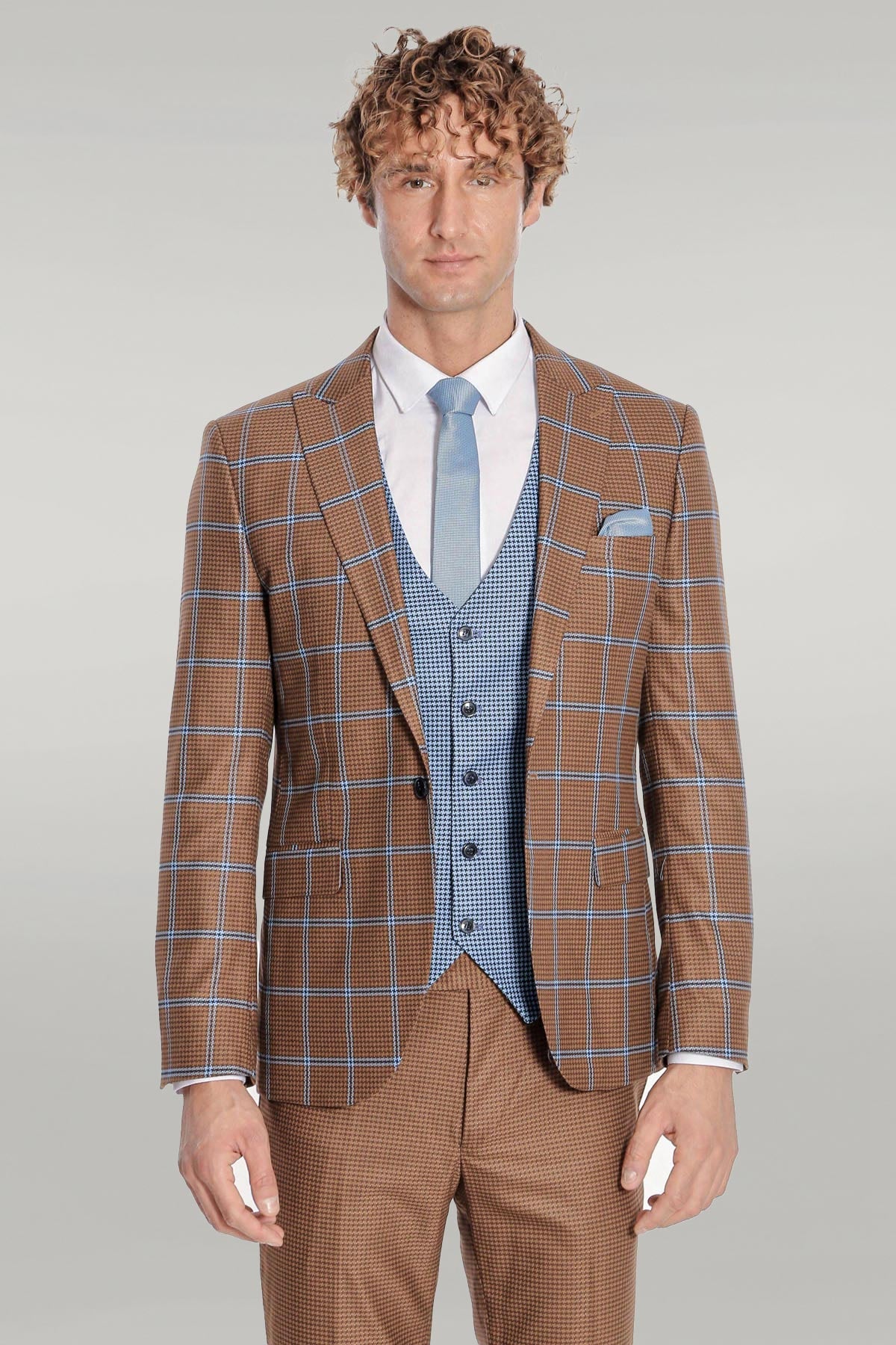 Checked Patterned Slim Fit Brown Men...