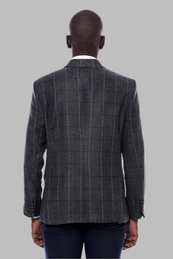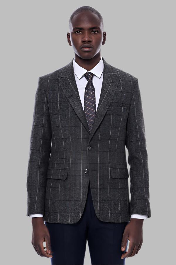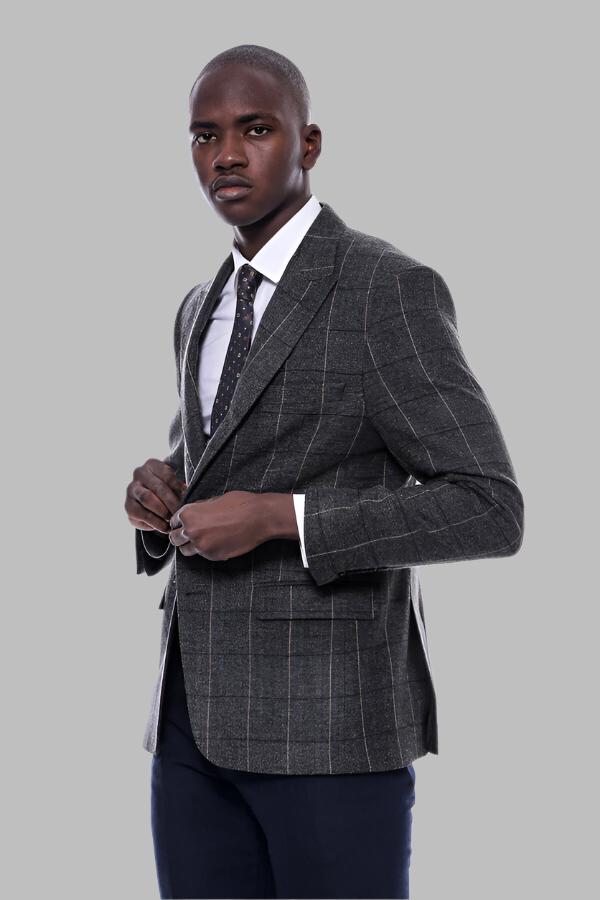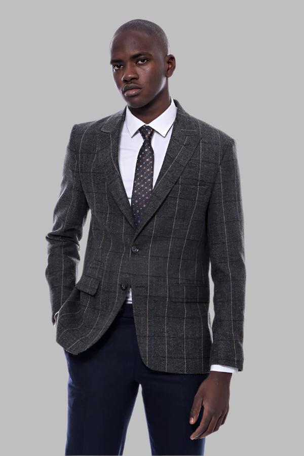 Checked Peak Lapel Slim-Fit Dark Grey...