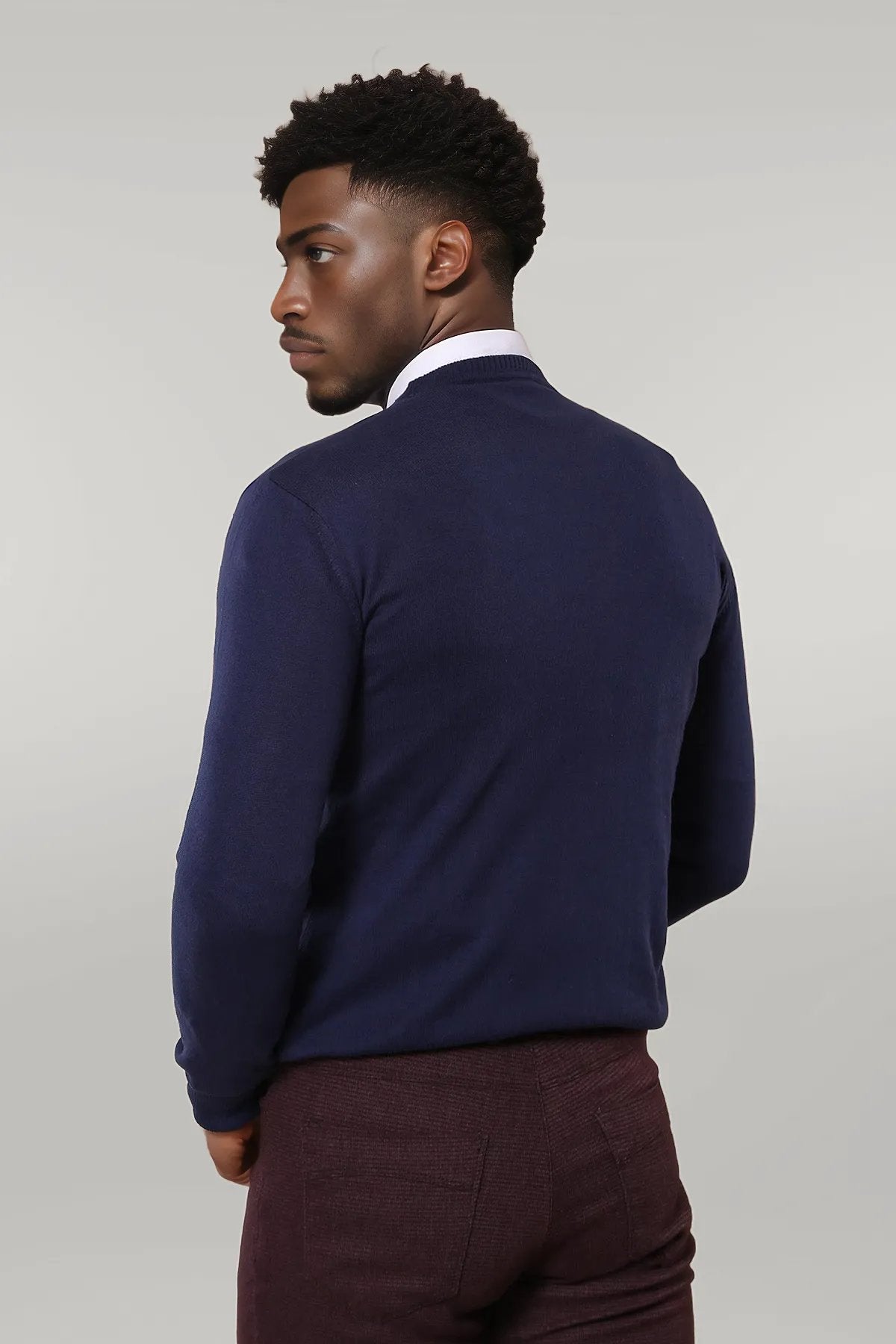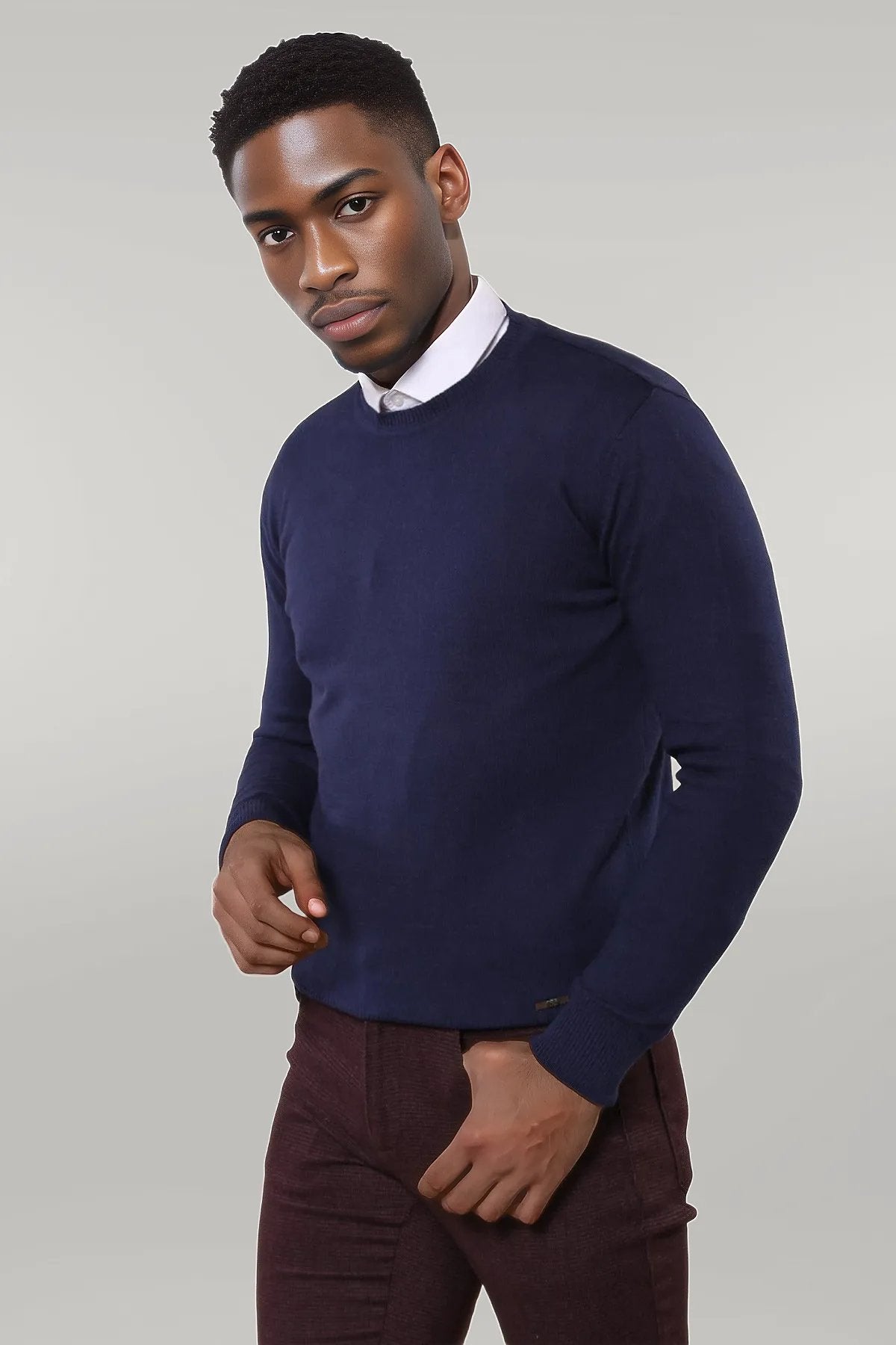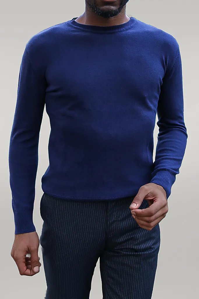 Circle Collar Navy Blue Sweater -