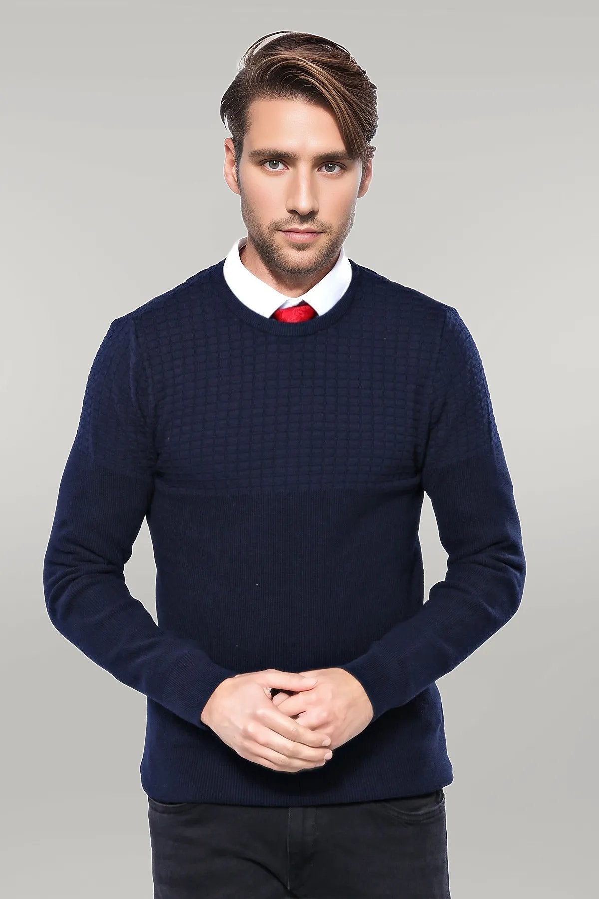 Circle Neck Navy Sweater