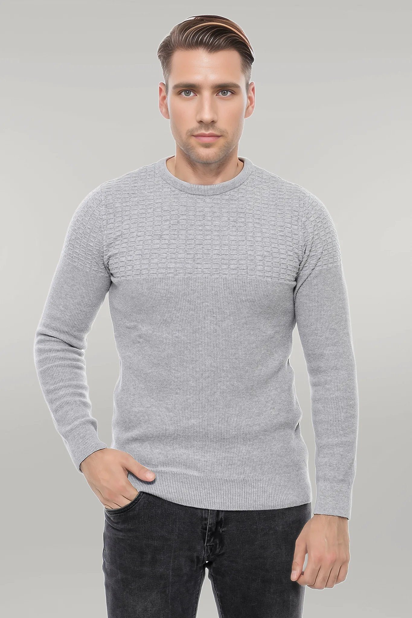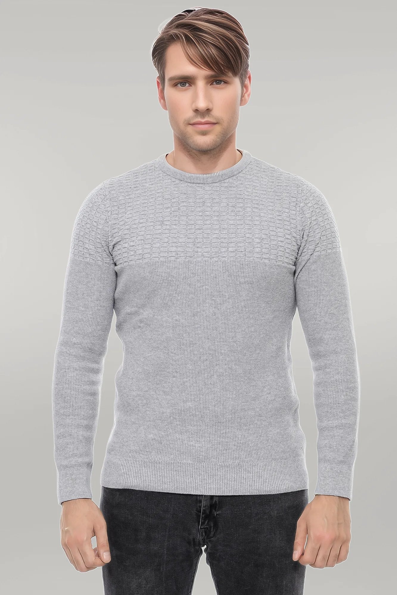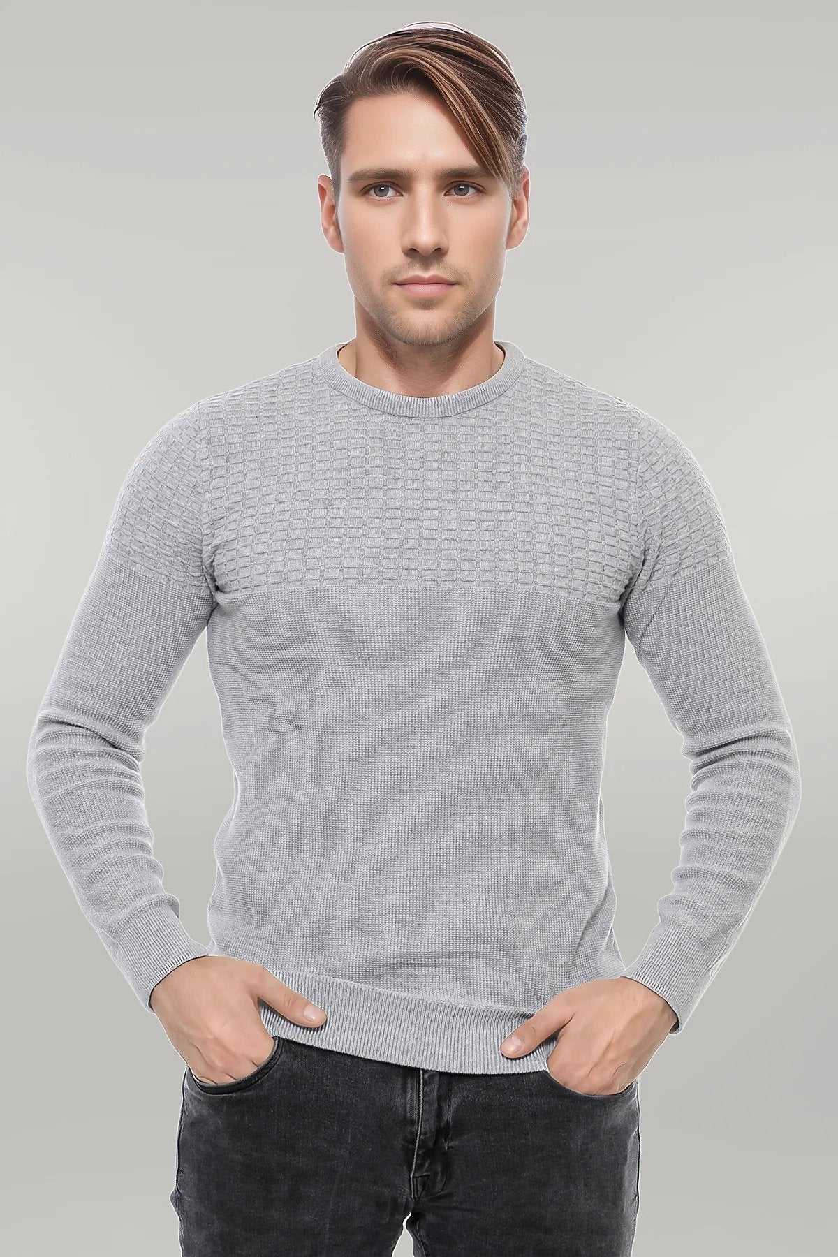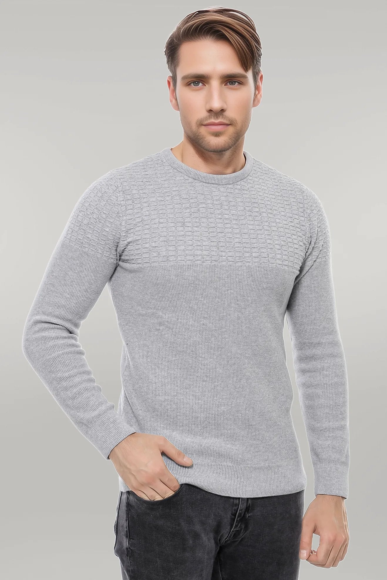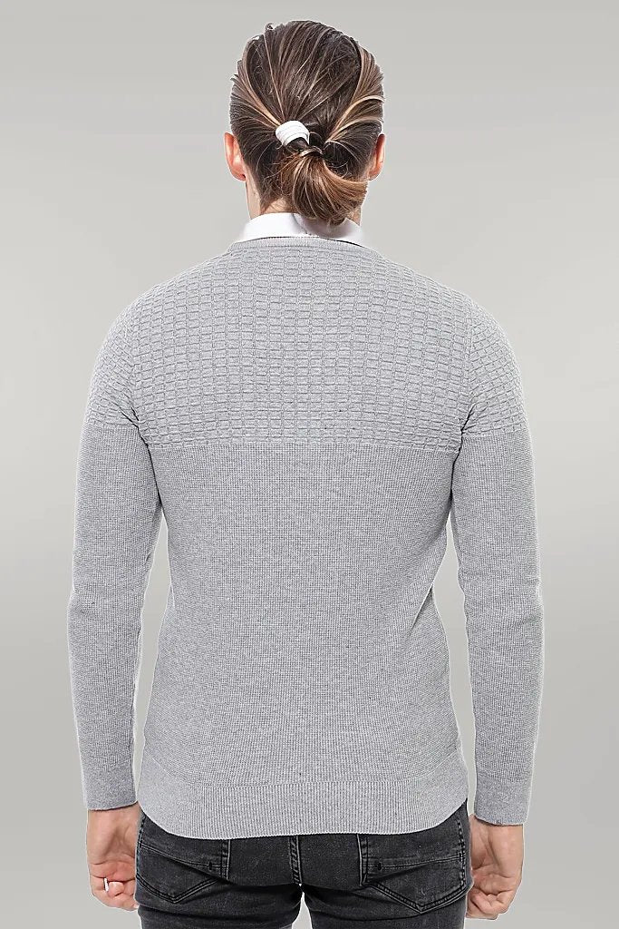 Circle Neck Patterned Light Grey Men...
