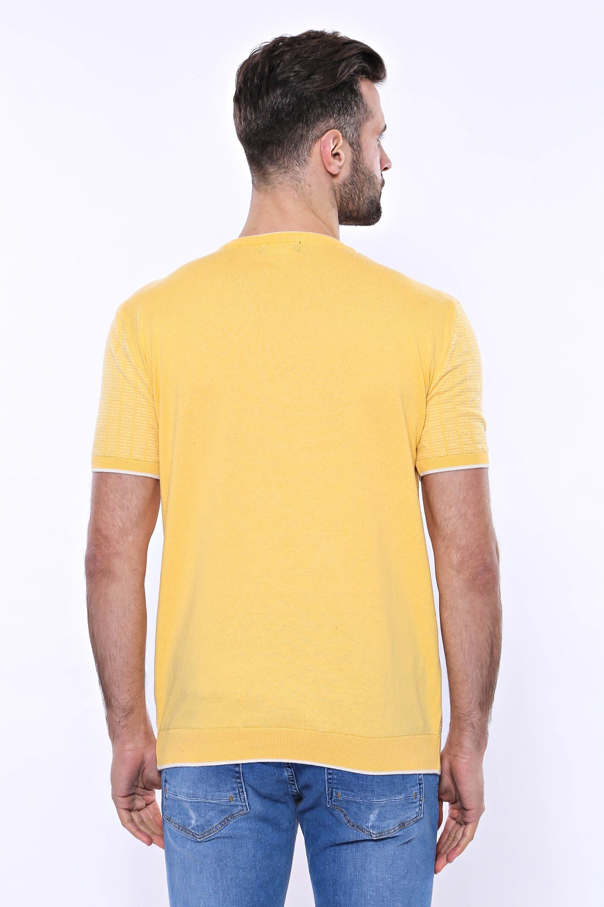 Circle Neck Patterned Yellow Knitted T-Shirt