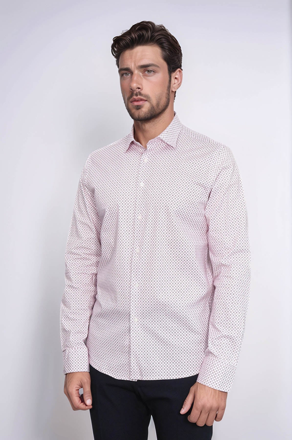 Claret Red Tiny Check Patterned Slim...